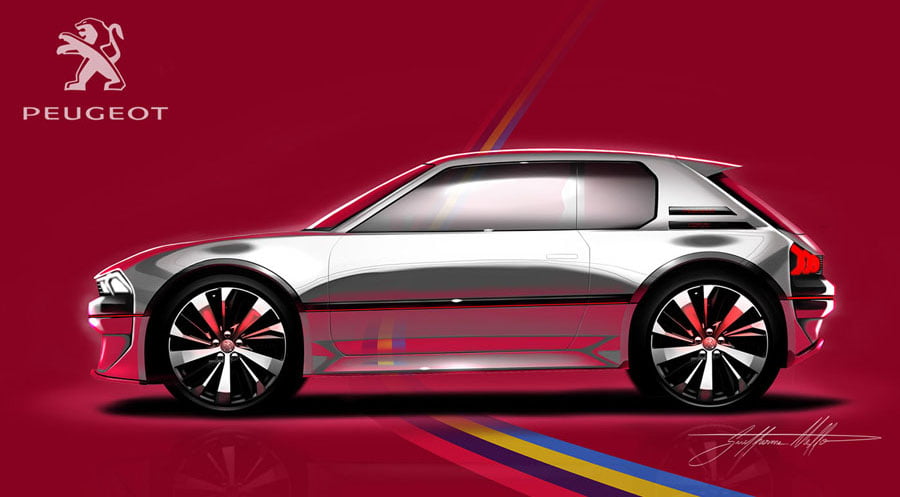 Πως όμως θα ήταν το Peugeot 205 GTi με τα σύγχρονα σχεδιαστικά γνωρίσματα της Peugeot; Σίγουρα άκρως ενδιαφέρον, όπως το δημιούργησε ψηφιακά, ο ανεξάρτητος σχεδιαστής Guilherme Mello. Στο σύγχρονο 205 GTi υιοθέτησε στοιχεία από το ελκυστικό πρωτότυπο Peugeot e-Legend και το «πάντρεμα» πέτυχε! Στο μυώδες εμπρός άκρο ξεχωρίζουν τα διπλά παραλληλόγραμμα φωτιστικά σώματα, η μακρόστενη μάσκα και ο προφυλακτήρας με τους μεγάλους αεραγωγούς. Στο πλάι διατήρησε τις γραμμές του 205, ενώ πίσω ταίριαξαν πολύ επιτυχημένα τα λεπτά κάθετα LED φώτα, οι αεραγωγοί και οι δύο ενσωματωμένες στον προφυλακτήρα απολήξεις της εξάτμισης.