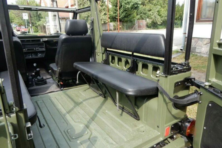 Ευρύτερα γνωστό ως Mercedes-Benz GD 250, εν προκειμένω Steyr-Puch και «Kurzversion». Κοινώς, με κοντό μεταξόνιο. Το συγκεκριμένο αυτοκίνητο μας έρχεται από τις ένοπλες δυνάμεις της Αυστρίας, είναι ατρακάριστο, εφοδιάζεται με τον κλασικό ατμοσφαιρικό ντίζελ των 2.497 κ.εκ. και 84 ίππων, διαθέτει υδραυλικό τιμόνι (όποιος έχει στρίψει «Καναδέζα» χωρίς υποβοήθηση, αναγνωρίζει για τι ευλογία μιλάμε), έχει καινούργια λάστιχα, 4άρι χειροκίνητο κιβώτιο και 69.404 χλμ.