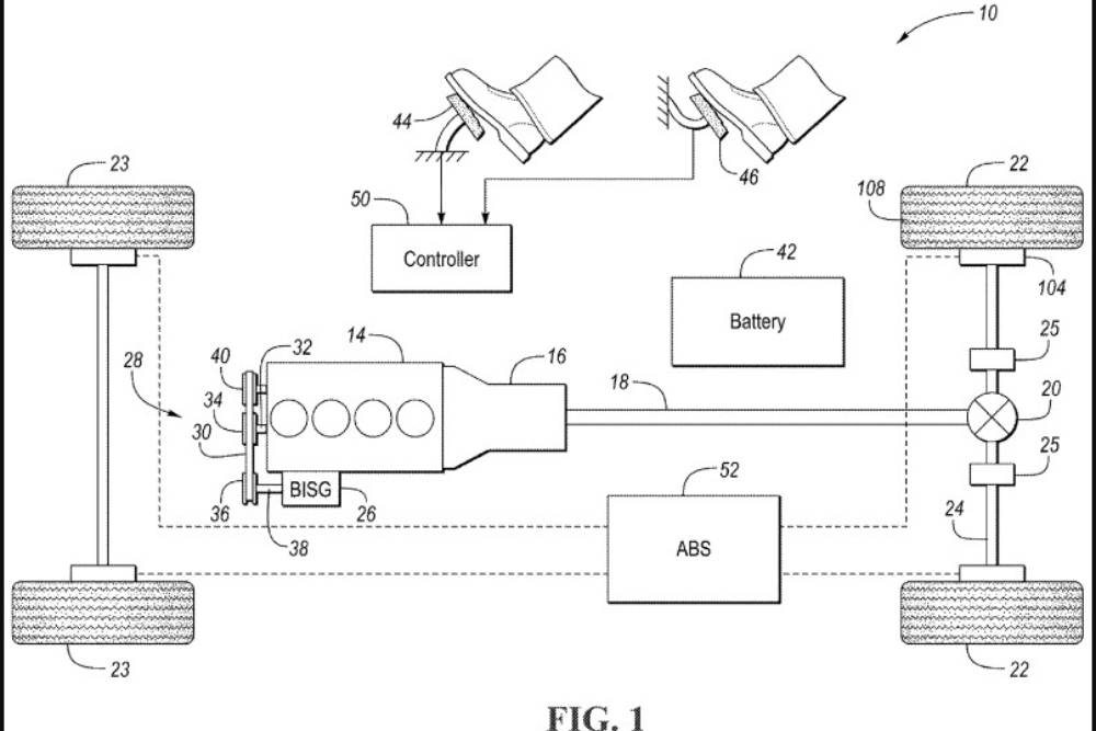 Όπως είδαμε στην αρχή της εβδομάδας, το «Μπλε Οβάλ» πατεντάρισε ένα νέο σύστημα drift mode με αποδέκτη τόσο μοντέλα με θερμικούς κινητήρες, όσο και ηλεκτρικούς. Δεν άργησαν να φουντώσουν οι φήμες για εξέλιξη ανάλογης Mustang, καθώς οι Αμερικανοί είχαν κάνει σχετικές αναφορές πέρσι. Οπότε τι πιο λογικό από την μετουσίωσή τους σε υλικό αποτέλεσμα, με την επόμενη γενιά ‘Stang; Στα σχέδια που κατατέθηκαν στο αρμόδιο Γραφείο Ευρεσιτεχνιών των Η.Π.Α., απεικονίζεται ένας τετρακύλινδρος κινητήρας κατά το διαμήκη άξονα, σε συνεργασία με ήπιο υβριδικό σύνολο BISG. Στον πίσω άξονα παρατηρούμε δυο σετ συμπλεκτών, εκατέρωθεν του διαφορικού, που αποτελούν δομικά συστατικά του drift mode.