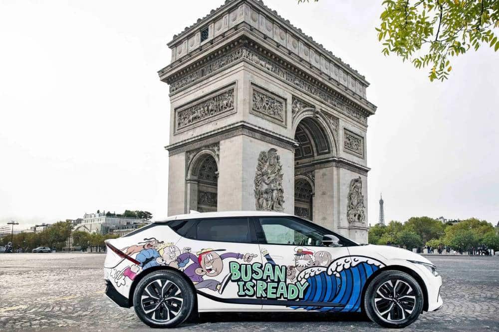 Οι Κορεάτες συνεργάστηκαν με τον Κορεάτη καλλιτέχνη γκράφιτι Jay Flow για τη δημιουργία 10 Hyundai και Kia, που διαμηνύουν την ετοιμότητα του Μπουσάν στη φιλοξενία του παγκόσμιου αυτού γεγονότος. Κάθε ένα από τα αυτοκίνητα, με πρωταγωνιστές τα Ioniq 5 και EV6, ντύνεται σε πολύχρωμο γκράφιτι με εικόνες-σήμα κατατεθέντα του Μπουσάν, όπως τα κύματα του ωκεανού, τη γέφυρα Gwangan, γλάρους και το απαραίτητο μότο «Το Μπουσάν είναι έτοιμο». Τα φιλότεχνα τετράτροχα θα παρουσιαστούν στο Busan Expo Symposium και μια συναυλία K-Pop, που θα πραγματοποιηθεί στο Παρίσι από τις 9 έως τις 15 Οκτωβρίου. Εκτός αυτών, θα πάρουν θέση σε ιστορικά μνημεία της γαλλικής πρωτεύουσας, όπως ο Πύργος του Άιφελ και το Μουσείο του Λούβρου.
