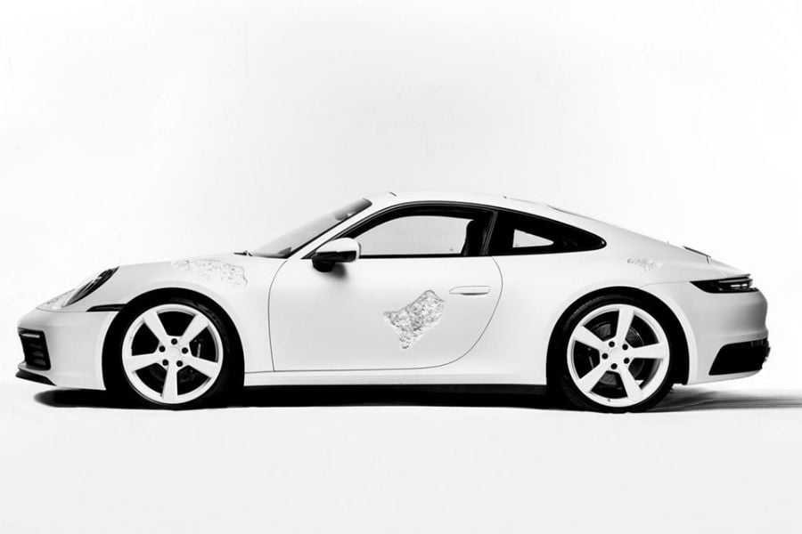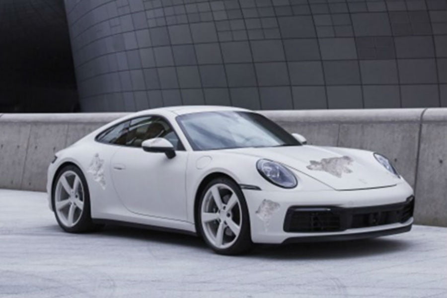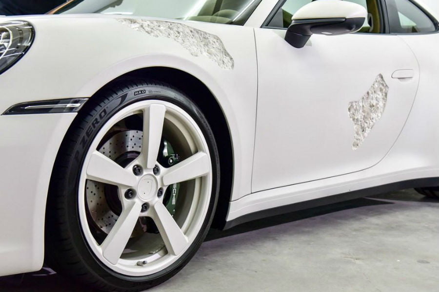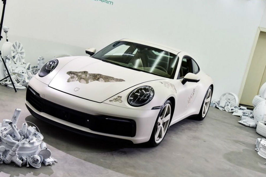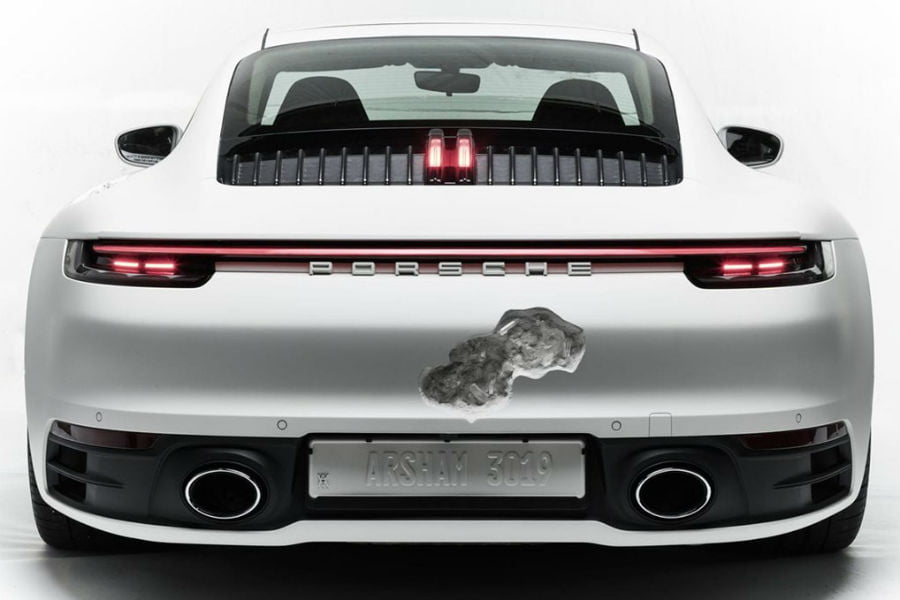 Ο Arsham είναι Αμερικανός visual artist, με ειδίκευση στη γλυπτική, τη ζωγραφική και τις τρισδιάστατες οπτασίες. Για παράδειγμα, χρησιμοποιεί ειδικά φύλλα χαρτιού ώστε να κάνει διάφορες επιφάνειες να μοιάζουν κατεστραμμένες, χωρίς να συμβαίνει στην πραγματικότητα. Στην λευκή 992 των φωτογραφιών, όμως, οτιδήποτε βλέπουμε δεν είναι ψευδαίσθηση. Ο καλλιτέχνης από το Κλίβελαντ, κυριολεκτικά σκάλισε το αμάξωμα του γερμανικού κουπέ, προκειμένου να του δώσει τη μορφή της κρυσταλλικής διάβρωσης!