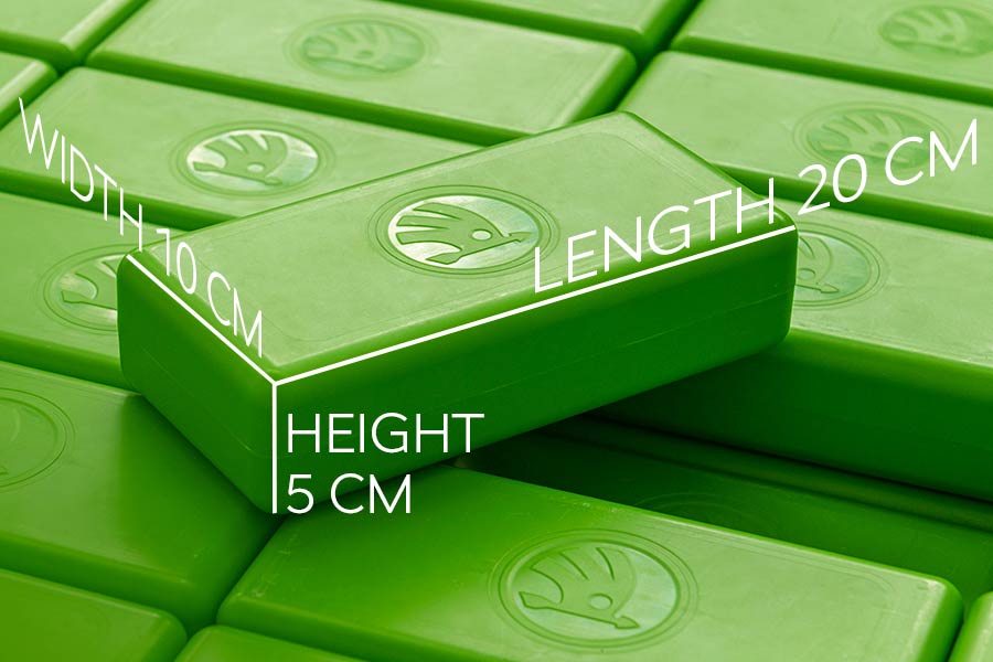 Ως μονάδα μέτρησης, οι τεχνικοί της Skoda έχουν τυποποιημένα πράσινα τουβλάκια 1 λίτρου, διαστάσεων 20 εκ. μήκους, 10 εκ. πλάτους και 5 εκ. ύψους. Η τοποθέτησή τους γίνεται με βάση ένα συγκεκριμένο τεχνικό πρότυπο (ISO3832). Μπορεί σε εμάς να ακούγεται κάτι το πολύ απλό, όμως η διαδικασία κρύβει αρκετές δυσκολίες. Για παράδειγμα, δεν επιτρέπεται να πιέζεται το τούβλο, παρόλο που μπορεί να υπάρχει ένα περιθώριο. Οι κανόνες υπαγορεύουν επίσης, μέχρι που μπορούν να φτάσουν τα τουβλάκια, αφού σε καμία περίπτωση δεν πρέπει να ξεπερνούν το ύψος της εταζέρας του πορτ μπαγκάζ.