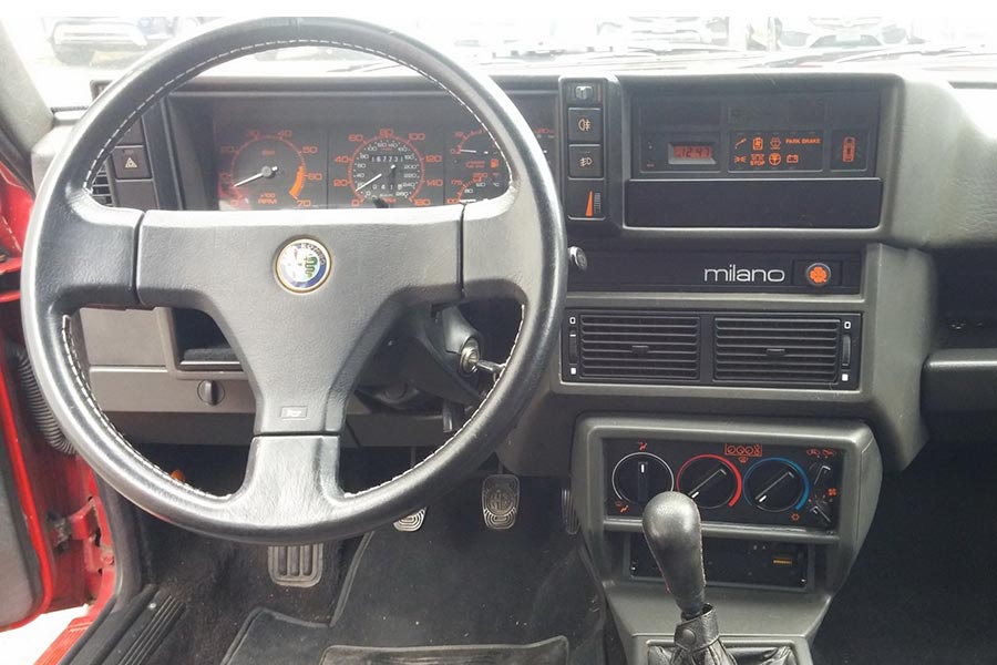 Εξωτερικά, το αυτοκίνητο βρίσκεται σε πολύ καλή κατάσταση, βαμμένο σε κόκκινο χρώμα, ενώ έχει τοποθετηθεί η μάσκα, τα φωτιστικά σώματα και οι προφυλακτήρες από την ευρωπαϊκή έκδοση της Alfa Romeo 75. Ο προηγούμενος ιδιοκτήτης είχε ανακατασκευάσει το σύστημα διεύθυνσης, ενώ είχε προβεί και στη βελτίωση του συστήματος ανάρτησης, μιας και είχε τοποθετήσει αντιστρεπτικές 27 χλστ., καθώς και αμορτισέρ της Bilstein. Σε καλή κατάσταση είναι και το εσωτερικό της Milano Verde, όπου υπάρχουν bucket καθίσματα σε ανθρακί απόχρωση, ηλιοροφή και ηλεκτρικά παράθυρα.