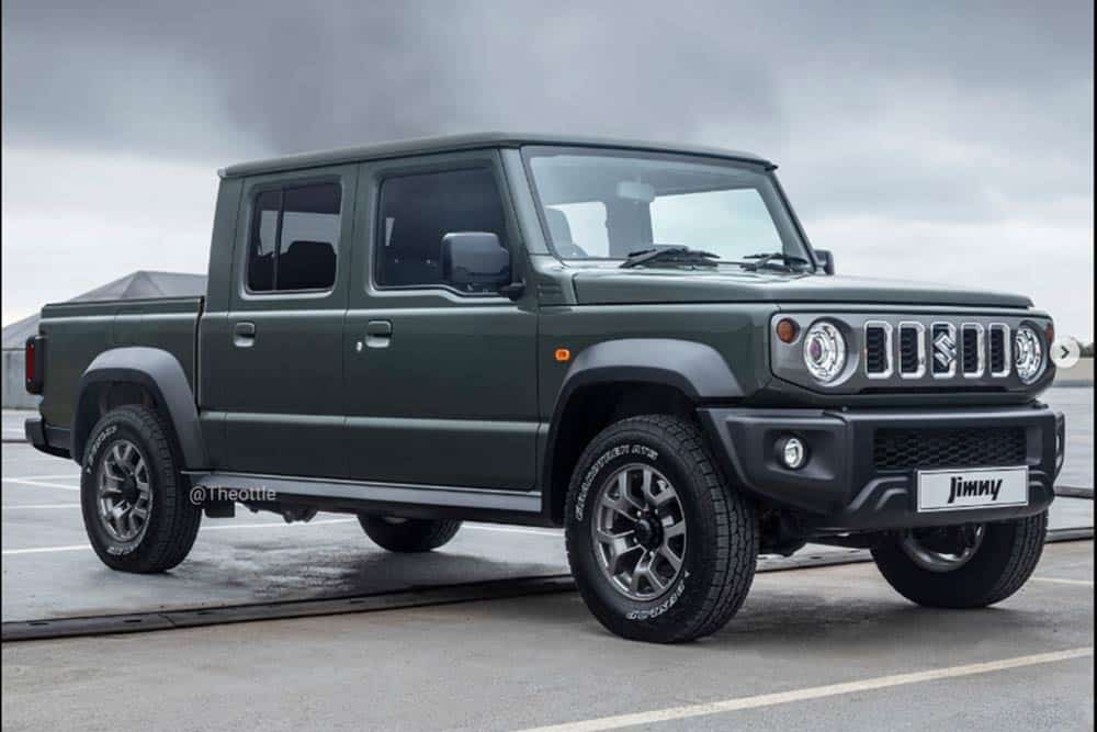 Εκτός από το 3θυρο και 5θυρο Jimny, κάποιοι δεν αποκλείεται να το ήθελαν και σε Pickup αμάξωμα, λόγω του σκληροτράχηλου εκτός δρόμου χαρακτήρα του. Πώς όμως θα μπορούσε να μοιάζει το Jimny σε «αγροτικό» διπλοκάμπινο; Τη λύση στο ερώτημα δίνει ο ανεξάρτητος σχεδιαστής Theottle. Πήρε ως βάση το 5θυρο Jimny και το προσάρτησε στο αμάξωμα και κυρίως την καρότσα του Jeep Gladiator. Το αποτέλεσμα είναι σίγουρα πολύ πετυχημένο αφού το «πάντρεμα» είναι πολύ ταιριαστό σε σημείο που θα μπορούσε να ήταν εργοστασιακό.