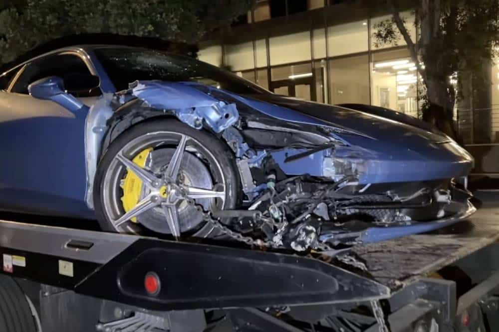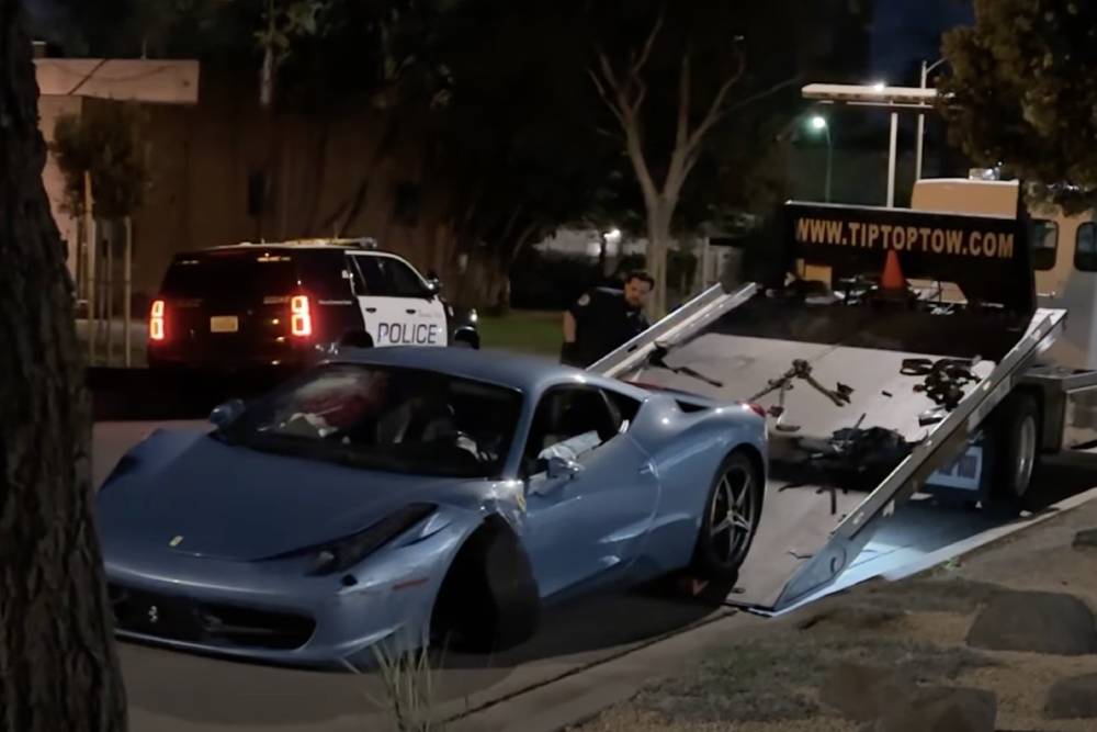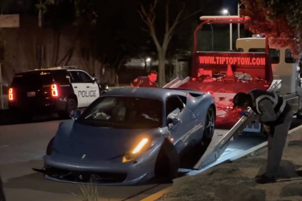 Τα πλάνα έρχονται από την καρδιά της μεγαλοαστικής μπουρζουαζίας των Η.Π.Α., ονόματι Μπέβερλι Χιλς. Η βαμμένη στο Azzuro California χρώμα 458 είχε την ατυχία να εμπλακεί σε ατύχημα, το οποίο προκάλεσε μεγάλες ζημιές στο μπροστινό μέρος. Μάλιστα το ιταλικό supercar εγκαταλείφθηκε, οπότε πολύ πιθανό να πρόκειται για κλεμμένο. Τα αίτια του τρακαρίσματος παραμένουν αδιευκρίνιστα, ωστόσο παρατηρούμε πως το «μπαμ» έγινε στα δεξιά – και ήταν και σημαντικά σφοδρό, κρίνοντας από το γεγονός ότι το σύστημα διεύθυνσης καταστράφηκε πρακτικά ολοσχερώς. Οι εμπρός τροχοί της Italia έμειναν να κοιτάνε αριστερά, δίχως το τιμόνι να μπορεί να μεταφέρει την παραμικρή κίνηση. Κάτι που δυσκόλεψε ακόμα περισσότερο τη μεταφορά της με την οδική, καθότι έπρεπε να συρθεί στην πλατφόρμα του γερανού.