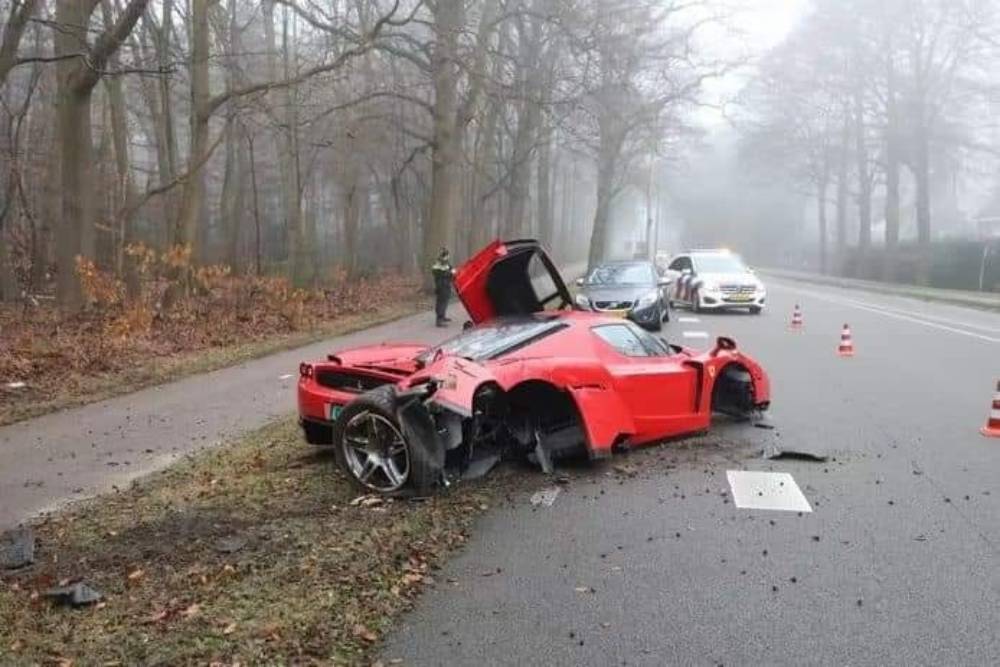 Το περιστατικό σημειώθηκε το πρωί της Τρίτης, στην Ολλανδία. Αυτόπτης μάρτυρας ανέφερε πως το ιταλικό supercar κινείτο με υπερβολική ταχύτητα, όταν ο οδηγός του έχασε τον έλεγχο και καρφώθηκε σε δέντρο, αφού πρώτα έφερε τετακέ. Αυτή η περιστροφή του αυτοκινήτου μείωσε κάπως τη δύναμη της πρόσκρουσης, βοηθώντας στο να διατηρηθούν σχετικά ανέπαφα το σασί και ο κινητήρας. Όπως βλέπουμε, βέβαια, η μοίρα της συγκεκριμένης Enzo μάλλον θα είναι μετατροπή σε ανταλλακτικά, καθώς το ανθρακονημάτινο αμάξωμα και οι αναρτήσεις έχουν υποστεί σοβαρές ζημιές, ενώ άνοιξαν και όλοι οι αερόσακοι.