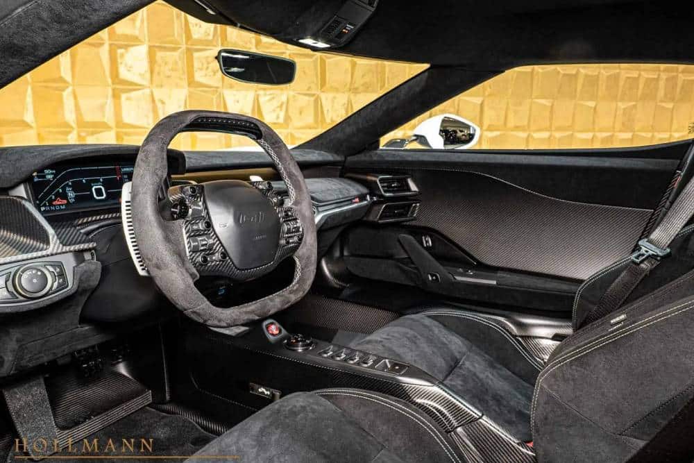 Μέλος της πολύ περιορισμένης έκδοσης Carbon Series, που διατέθηκε σε ελάχιστους αγοραστές επιλεγμένους από την ίδια τη Ford, ξεχωρίζει για τα κομμάτια «γυμνού» ανθρακονήματος και το συνδυασμό Frozen White χρώματος με μαύρη-κόκκινη racing stripe. Το «Carbon Series» σημαίνει πως και οι ζάντες κατασκευάζονται από ανθρακονήματα, συνεργαζόμενες με εξάτμιση τιτανίου για τη μείωση του βάρους κατά 18 κιλά σε σχέση με τα υπόλοιπα GT. Περισσότερες ίνες άνθρακα συναντάμε και στις επενδύσεις του εσωτερικού, το οποίο ούτως ή άλλως είναι σαν να βλέπεις αγωνιστικού με στοιχεία άνεσης. Εξάλλου το GT αυτό ακριβώς είναι: ένα αυτοκίνητο που πρώτα εξελίχθηκε για να πάρει την νίκη στο Le Mans και μετά για να κυκλοφορεί στο δρόμο.