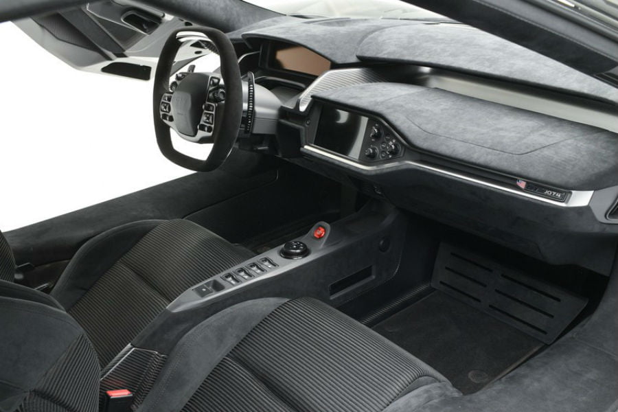 Το συγκεκριμένο, ας πούμε, έχει μόλις 1.372 χλμ. στο οδόμετρο. Βαμμένο σε Shadow Black και με διακριτικές ανθρακί λωρίδες Alloy κατά μήκος του αμαξώματος, είναι από τα πρώτα GT που μπορούν να πωληθούν καθώς η Ford έχει επιβάλλει 24μηνη απαγόρευση μεταπώλησης, ακριβώς για να αποτρέψει ακραίες υπερτιμολογήσεις και αισχροκέρδεια. Πατάει σε 20άρες ζάντες Satin Graphite, με ελαστικά Michelin Pilot Sport Cup 2 γύρω και κόκκινες δαγκάνες της Brembo στα κεραμικά δισκόφρενα πίσω τους. Προφανώς ο ιδιοκτήτης το αγόρασε ως επένδυση, οπότε πέραν των λίγων χιλιομέτρων, η εξαιρετική κατάσταση είναι αυτονόητη. Τα 1,21 εκατ. δολάρια (1,02 εκατ. ευρώ) που έπιασε σε δημοπρασία όχι τόσο, αλλά δεν προκαλούν και έκπληξη με τόσα που έχουμε δει.