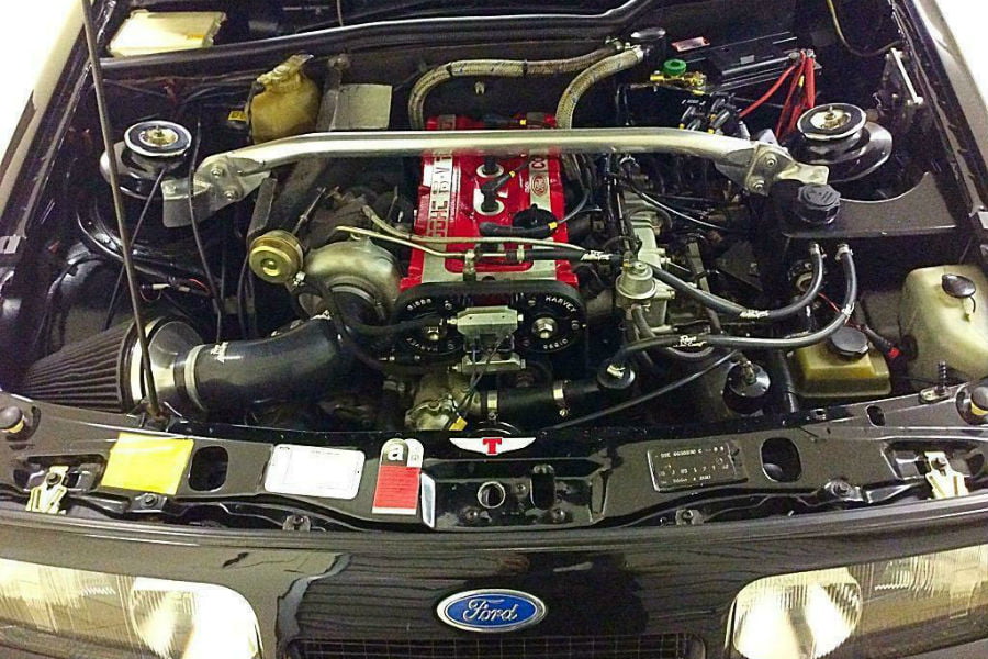 Δείτε το συγκεκριμένο, για παράδειγμα. Είναι του 1987, με 94.951 χιλιόμετρα (59.000 μίλια), δεξιοτίμονο, σε εξαιρετική κατάσταση -όπως δηλώνει ο σημερινός ιδιοκτήτης- και βελτιωμένο στα 450 άλογα. Ο υπερτροφοδοτούμενος κινητήρας των 1.993 κ.εκ. της Cosworth εξάλλου, έχτισε ολόκληρη βελτιωτική δυναστεία με την έφεση και αντοχή του στο «πείραγμα», οπότε o διπλασιασμός της εργοστασιακής ισχύος (224 άλογα) δεν θα πρέπει να προκαλεί φόβο για την ακεραιότητα του μοτέρ. Οι ανάλογες βελτιώσεις υπάρχουν σε ανάρτηση και φρένα, με ένα custom kit της AP Racing να αναλαμβάνει την επιβράδυνση των 1.227 κιλών του αμαξώματος.