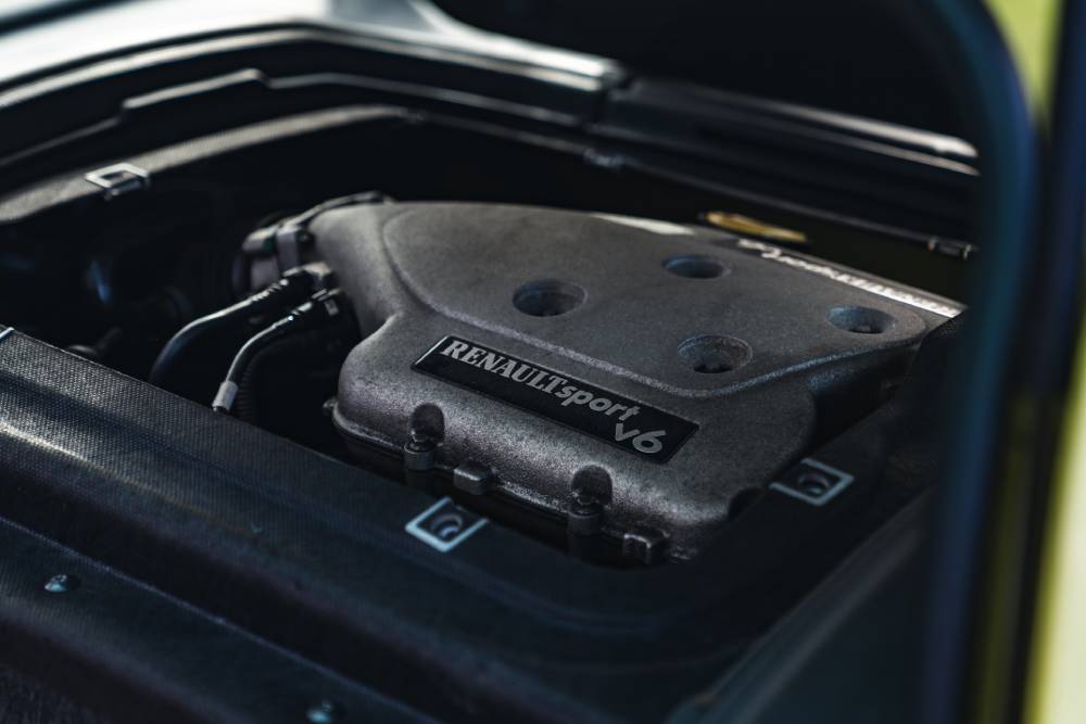Δημιουργήθηκε το 2001 από τους ενθουσιώδεις μηχανικούς της Renault Sport, ως διάδοχος του θρυλικού 5 Turbo. Του κεντρομήχανου και τουμπανιασμένου «5αριού» των 80’s, που ήταν η homologation special έκδοση του αγωνιστικού, που μεγαλούργησε στα χέρια του Jean Ragnotti. Το αμάξωμα και το πλαίσιο ξεχείλωσαν σε πλάτος, φτάνοντας τα 1.940 χλστ. Το μήκος έφτασε τα 3.830 χλστ. και το μεταξόνιο ίσα που υπερέβαινε τα 2,5 μέτρα. Στο κέντρο του αυτοκινήτου, τοποθετήθηκε ο 3λιτρος V6 της Laguna, βελτιωμένος στα 230 άλογα στις 6.000 σ.α.λ. και τα 300 Nm ροπής στις 3.750 σ.α.λ., με την κίνηση να μεταδίδεται στους πίσω τροχούς μέσω 6τάχυτου χειροκίνητου κιβωτίου.