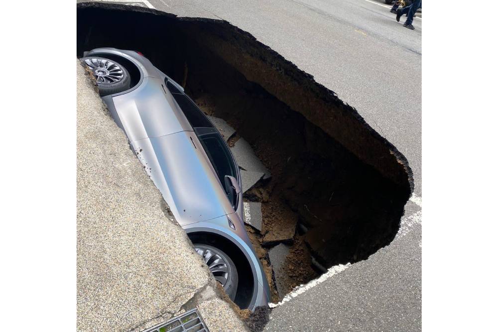 Το σκηνικό με το «υπόγειο» Model Y διαδραματίστηκε στην πόλη Ζουμπέι της Ταϊβάν, δίχως να έχει υπάρξει πριν η παραμικρή ένδειξη ή προειδοποίηση. Το ηλεκτρικό best seller ήταν παρκαρισμένο μαζί με άλλα αυτοκίνητα, στην άκρη του δρόμου. Τι πιο φυσιολογικό; Η μέρα κυλούσε όπως κάθε άλλη, μέχρι που το οδόστρωμα αποφάσισε να υποχωρήσει κάτω από το Model Y. Το Tesla «χύθηκε» με το πλάι κάτω από το έδαφος και προσγειώθηκε στην αριστερή του πλευρά, την ώρα που κανένα άλλο παρκαρισμένο δεν έπαθε ούτε γρατζουνιά.