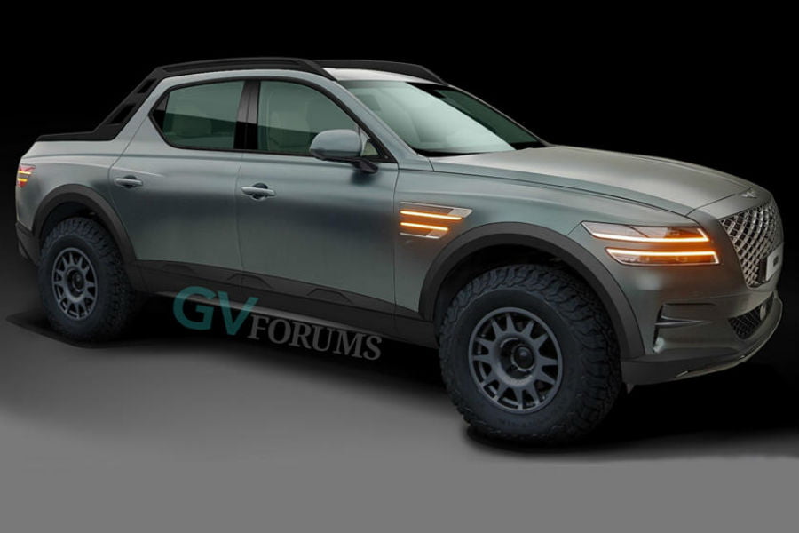 Μετά τα νέα G80, G90 και το λανσάρισμα του πρώτου της SUV, του GV80, οι «κυριλέ» Κορεάτες καλοβλέπουν το ενδεχόμενο εισόδου στην κατηγορία των pick ups. Αυτό ανέφερε στέλεχος της εταιρίας σε αμερικανικό μέσο, ερωτηθείς σχετικά με το επερχόμενο Hyundai Santa Cruz: «Θα δούμε πως θα πάει το λανσάρισμα του Santa Cruz. Αν ο κόσμος το αγκαλιάσει, δεν αποκλείεται να παρουσιάσουμε κι εμείς ένα ανάλογο μοντέλο». Και κατευθείαν, το GVForums έσπευσε να παρουσιάσει δυο ψηφιακές εκδοχές του πιθανολογούμενου αγροτικού.