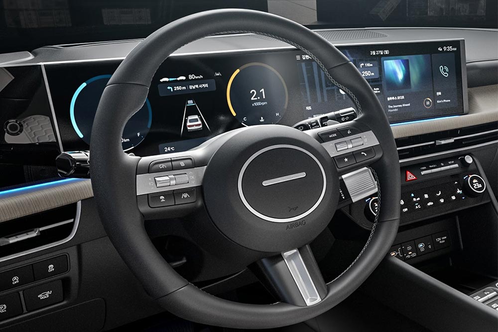 Τα Hyundai όσο πάνε και εξελίσσονται ολοένα περισσότερο σε «διαστημόπλοια». Η high tech τεχνοτροπία που ξεκίνησε από το Ioniq 5, πέρασε στο επόμενο επίπεδο στο Ioniq 6 και από εκεί, σιγά-σιγά, βρίσκει το δρόμο προς την υπόλοιπη γκάμα. Μια ματιά στα νέα Kona και Sonata, αρκεί. Όχι μόνο εξωτερικά, αλλά περισσότερο εσωτερικά. Εκεί όπου οι δίδυμες οθόνες αφής συνοδεύονται από ένα μοναδικό χαρακτηριστικό, μπροστά στα μάτια του οδηγού και -κυριολεκτικά- μέσα στα χέρια του. Μιλάμε, φυσικά, για το τιμόνι, που δεν μοιάζει με κανενός άλλου κατασκευαστή – κι όχι απαραίτητα μόνο mainstream.