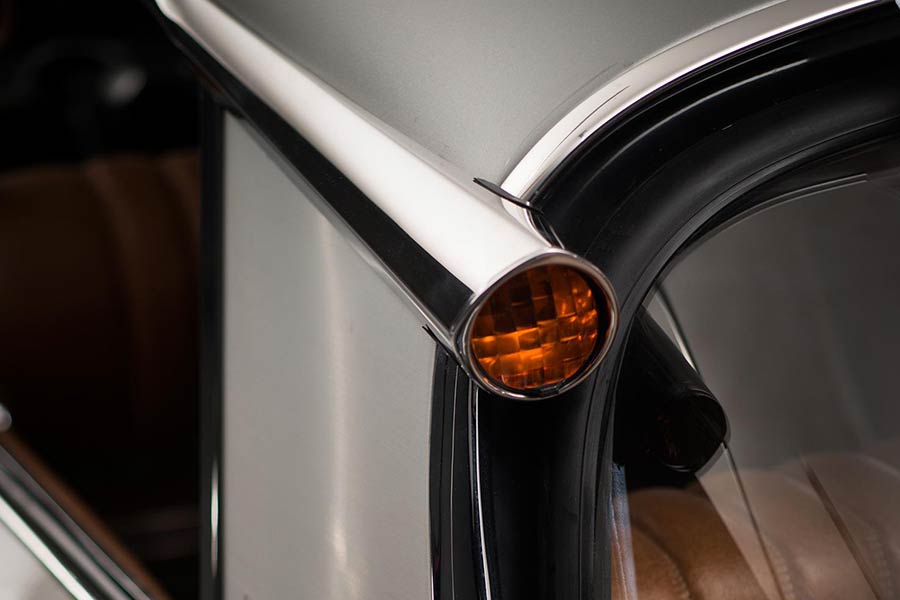 Στο πίσω μέρος, οι δείκτες αλλαγής κατεύθυνσης ήταν τοποθετημένοι ψηλά στις κολόνες και έχοντας καμία σχέση με τα πίσω φανάρια. Το σημείο έδρασης ουσιαστικά είναι προέκταση του πλαισίου των παραθύρων, χαμηλώνοντας νοητά τη γραμμή της οροφής. Εκ πρώτης όψεως, περισσότερο με αεροδυναμικό στέλεχος μοιάζουν παρά με φλας. Κάτι που εν πολλοίς είναι αλήθεια. Το σχήμα είναι διαμορφωμένο κατά τέτοιο τρόπο, ώστε να οδηγεί τον αέρα με τακτικό τρόπο και να ομαλοποιεί τη ροή του στο πίσω μέρος, βελτιστοποιώντας τον βαθμό αντίστασης στα ρεύματα. Πέραν της αεροδυναμικής, ωστόσο, η θέση των φλας εξυπηρετούσε και χρηστικό ρόλο.