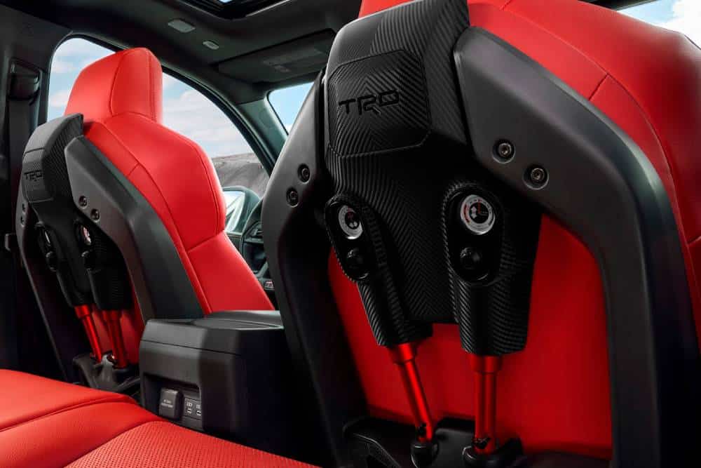 Το νέο Toyota Tacoma είναι γεμάτο προσόντα και ιδιαίτερα χαρακτηριστικά. Ολοκαίνουργια πλατφόρμα, τεχνολογίες συνδεσιμότητας, υβριδικά μοτέρ, πολυάριθμες εκδόσεις. Από όλα τα γνωρίσματα και τα εξοπλιστικά του στοιχεία, όμως, ένα είναι αυτό που ξεχωρίζει περισσότερο από κάθε άλλο: τα καθίσματα του TRD Pro.