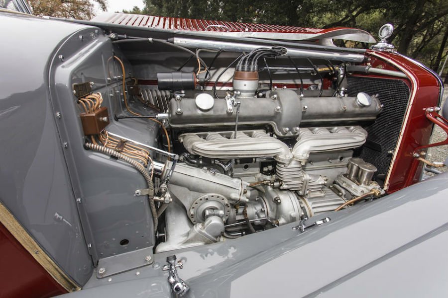 Μία από τις μόλις 7 8C 2300 Figoni Cabriolet Décapotable, από το 1932, εκτιμάται ότι θα φτάσει στα 11 εκατ. δολάρια (9,9 εκατ. ευρώ) στην προσεχή δημοπρασία, καθότι είναι από τις πιο σπάνιες Alfa που μπορεί να βρει κανείς. Κάτω από το μακρύ καπό συναντάμε έναν 8κύλινδρο εν σειρά κινητήρα, 2.336 κ.εκ. με διπλούς εκκεντροφόρους επικεφαλής και μηχανικό υπερσυμπιεστή τύπου Roots. H απόδοση των 150 ίππων στις 5.000 σ.α.λ. ήταν ασύλληπτο νούμερο για αρχές δεκαετίας του 30, αλλά αυτό που πραγματικά ξέφευγε από τα όρια της πραγματικότητας για αυτοκίνητο παραγωγής ήταν η τελική ταχύτητα: η συγκεκριμένη έκδοση της 8C είχε μετρηθεί στα 197 χλμ./ώρα! Και πώς επιβράδυνε από αυτά τα επίπεδα; Με ταμπούρα σε όλους τους τροχούς!
