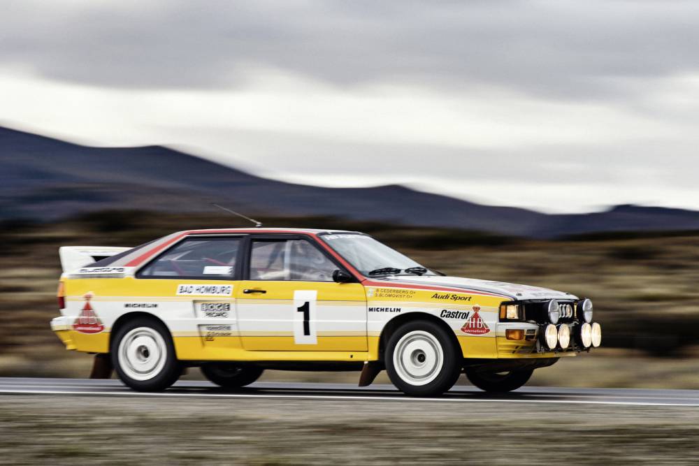 Η πραγματική εκτόξευση ήρθε το 1980 με το αρχικό Audi quattro. Ο πεντακύλινδρος turbo βενζινοκινητήρας, συνδυασμένος με intercooler και μόνιμη τετρακίνηση, δημιούργησε ένα ολοκληρωμένο τεχνολογικό σύνολο που άλλαξε την πορεία τόσο των αγώνων όσο και των αυτοκινήτων δρόμου. Στην εμπορική του διάθεση απέδιδε 200 άλογα, αρκετά για να οδηγήσει την Audi στην κορυφή του Παγκοσμίου Πρωταθλήματος Ράλλυ το 1982, ενώ ένα χρόνο μετά ο Φινλανδός Hannu Mikkola κατέκτησε τον τίτλο των οδηγών.