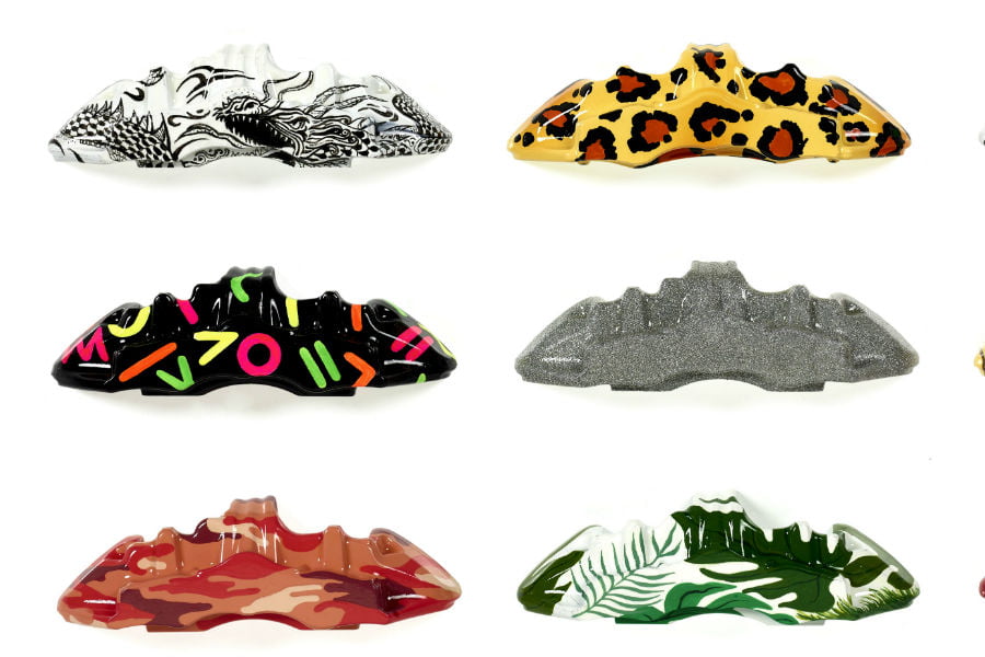 Η φημισμένη ιταλική εταιρία κατασκευής επιβράδυνσης ονείρων, παρουσίασε στην Γενεύη μια σειρά από δαγκάνες εμπνευσμένες από τον χώρο της τέχνης και της μόδας, σπάζοντας το χαρακτηριστικό κόκκινο «εμπάργκο» (υπάρχουν, βέβαια, εφαρμογές σε μαύρο αλλά και κίτρινο χρώμα, όπως στις περιπτώσεις των κεραμικών δισκόπλακων). 9 διαφορετικά σχέδια, με επιρροές από την δεκαετία του 70, τους πίνακες του Andy Warhol, το ζωϊκό βασίλειο και τον χώρο της μελανοστιξίας (τατουάζ κοινώς) πήραν θέση στο περίπτερο της Brembo, με κάποιες εξ αυτών να είναι καλυμμένες ακόμα και με γκλίτερ.