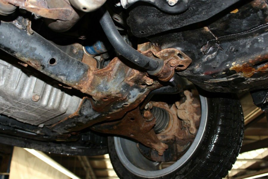 Κάτω από το δυναμικό παρουσιαστικό, το Civic έχει σαπίσει σχεδόν εξ ολοκλήρου. Η εικόνα του πλαισίου προκαλεί σοκ, ειδικά για καλοσυντηρημένο αυτοκίνητο 15ετίας, με ούτε 30.000 χλμ. στο ενεργητικό του. Εδώ έρχεται το ακόμα καλύτερο κομμάτι.