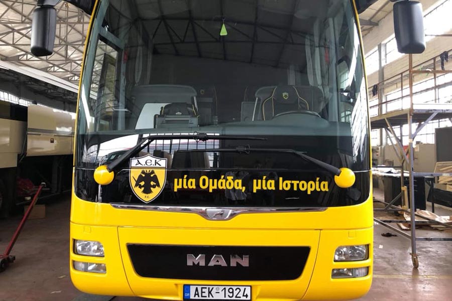 Όπως φαίνεται και από τις εικόνες που έδωσε η ΑΕΚ στη δημοσιότητα, μέσω των social media που διαχειρίζεται η Π.Α.Ε. το πούλμαν πλέον έχει ντυθεί με κίτρινο χρώμα, σε αντίθεση με το προηγούμενο στο οποίο κυριαρχούσε το μαύρο χρώμα και ο αετός. Το νέο πούλμαν στα πλάγια γράφει Αθλητική Ένωσης Κωνσταντινουπόλεως, έχει το σήμα της ομάδας και ελληνικές πόλεις της Μικράς Ασίας και του Πόντου.
