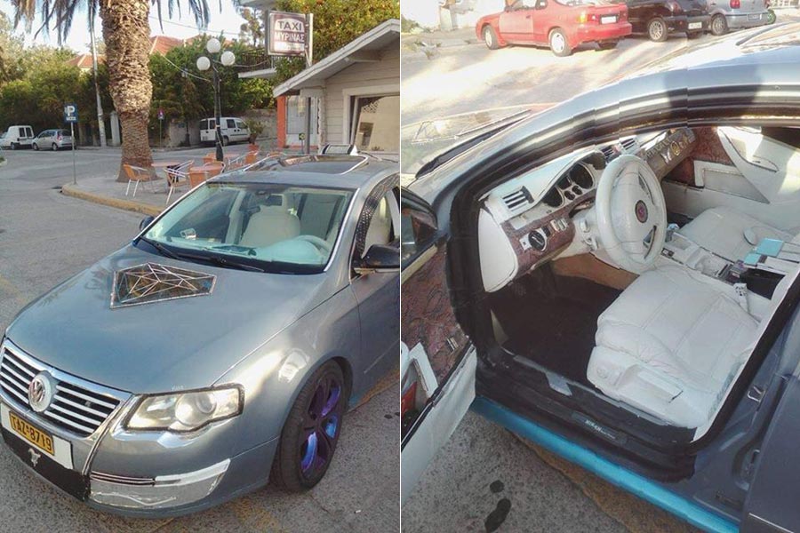 Αναγνώστης, μας έστειλε τις φωτογραφίες που βλέπετε με το φαντασμαγορικό αυτό ταξί. Ψάχνοντας στο διαδίκτυο, βρήκαμε ότι αυτό το VW Passat με τις πάρα πολλές προσθήκες στο αμάξωμα αλλά κυρίως στο εσωτερικό, ανήκει στον κ. Δημήτρη Αμπελώμο και εδρεύει στην πιάτσα των ταξί Μυρίνας.