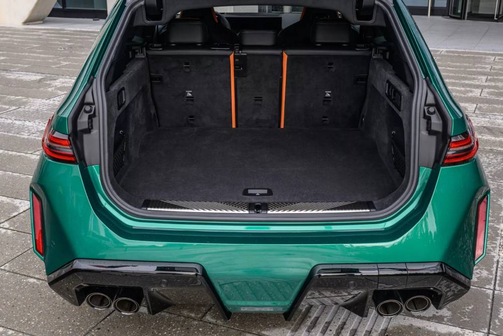 Σε σχέση με τη G90, η Touring είναι ακόμα βαρύτερη, φτάνοντας τα 2.475 κιλά στο σύνολο (+40 συγκριτικά με την τετράθυρη, 2.504 κιλά μετρήθηκε εδώ). Παρόλα αυτά, τα νούμερα επιδόσεων που συνοδεύουν το σωματώδες (5+ μέτρα μήκος) estate προκαλούν αίσθηση: 0-100 χλμ./ώρα σε 3,6 δλ. (3,5 δλ. η Μ5), 0-200 χλμ./ώρα σε 11,1 δλ., 80-120 χλμ./ώρα με 5η σε 3,1 δλ. και τελική 250 χλμ./ώρα (ηλεκτρονικά περιορισμένη) ή 305 χλμ./ώρα με το προαιρετικό M Driver’s Package. Όλα αυτά, χάρη στη δυναμική του plug-in hybrid σύνολο με τη συνδυαστική ισχύ των 727 ίππων και 1.000 Nm, που θερμικά αποτελείται από τον 4.4 λτ. V8 twinturbo των 585 ίππων στις 5.600-6.500 σ.α.λ. και 750 Nm στις 1.800-5.400 σ.α.λ., φτάνοντας έως τις 7.200 σ.α.λ. στον κόφτη. Το μοτέρ λαμβάνει έξτρα δύναμη από τον ηλεκτροκινητήρα των 197 ίππων στις 6.000 σ.α.λ. και 280 Nm στις 1.000-5.000 σ.α.λ. (450 Nm στην είσοδο του 8τάχυτου αυτόματου κιβωτίου, μέσω pre-gearing).