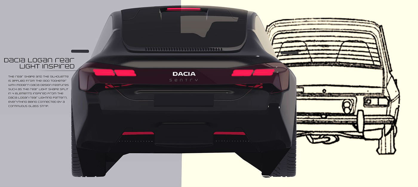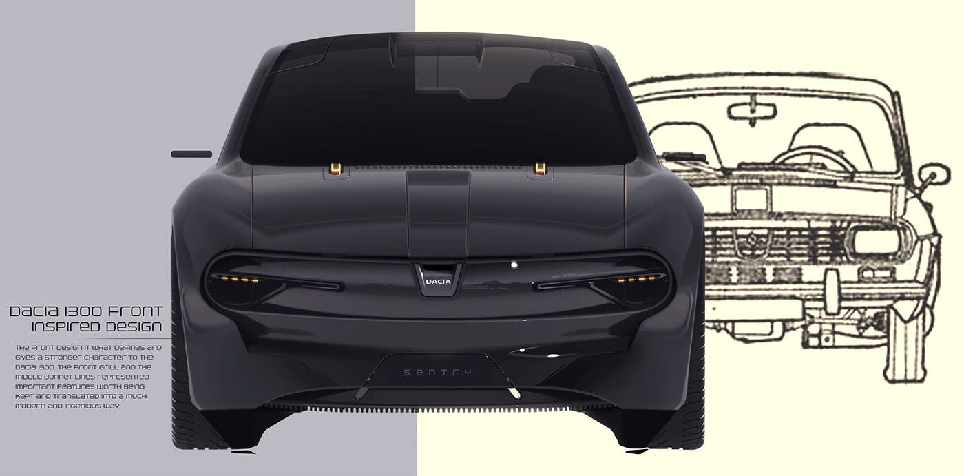Σύμφωνα με τον Ticarat Alexandru-Calin, έναν ανεξάρτητο digital designer, άνετα! Εξ ου και η πρόταση για αναβίωση του 1300, σε αυτή την σκοτεινή και δυναμική μορφή. Το Dacia Sentry Dark Edition είναι η άποψη του Ρουμάνου σχεδιαστή για το Liberta της ηλεκτρικής εποχής, αντλώντας επιρροές τόσο από το αρχικό μοντέλο του 1969, όσο και τα Tesla Model S και Porsche Taycan. Το μήκος φτάνει τα 5.040 χλστ. και το πλάτος τα 1.907 χλστ., πράγμα που σημαίνει ότι μιλάμε για κανονική λιμουζίνα.