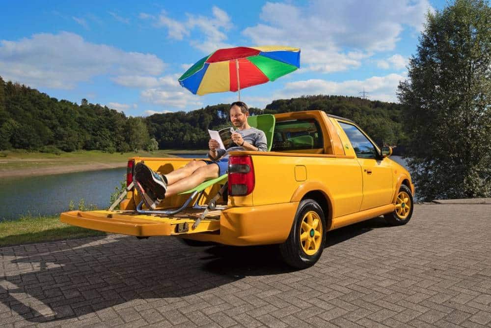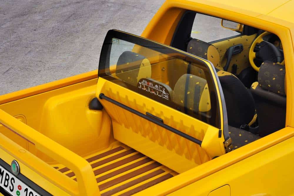 Η μεγαλύτερη έκπληξη «κρυβόταν» στο εσωτερικό της, όπου το διαχωριστικό τμήμα της καμπίνας ήταν συρόμενο, αναδιπλούμενο και ενσωμάτωνε δύο ακόμα θέσεις ανάγκης. Όταν το τμήμα αυτό άνοιγε, το μήκος του χώρου φόρτωσης -με τις επενδύσεις ξύλου ελάτης, μειωνόταν στα 850 χλστ. από τα αρχικά 1.370 χλστ. Ο χώρος φόρτωσης διέθετε ένα roll bar πίσω από τη δεύτερη κολόνα, όπως και ένα σπόιλερ στο τελείωμα της καρότσας.