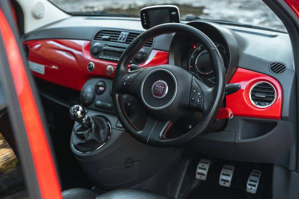 To 500αράκι που βλέπουμε ανήκει στην εκλεκτή κάστα των Ferrari Dealer Edition. Μιας έκδοσης που κυκλοφόρησε το 2008 και σε μόλις 200 κομμάτια, εκ των οποίων μόνο 60 σε δεξιοτίμονη διάταξη. Το Rosso Corsa χρώμα του αμαξώματος είναι κοινό με το κόκκινο που φοράνε οι δημιουργίες του Μαρανέλο, το οποίο δανείζει μέχρι τα σήματά του! Παρατηρούμε τον τιμημένο θυρεό της Scuderia στα εμπρός φτερά, που χαρίζουν στον κάτοχο του 500 Ferrari Dealer Edition ένα μοναδικό προνόμιο στις τάξεις των mainstream αυτοκινήτων: το έμβλημα του «Cavallino Rampante», δίχως μάλιστα το φόβο μήνυσης από τους Ιταλούς!