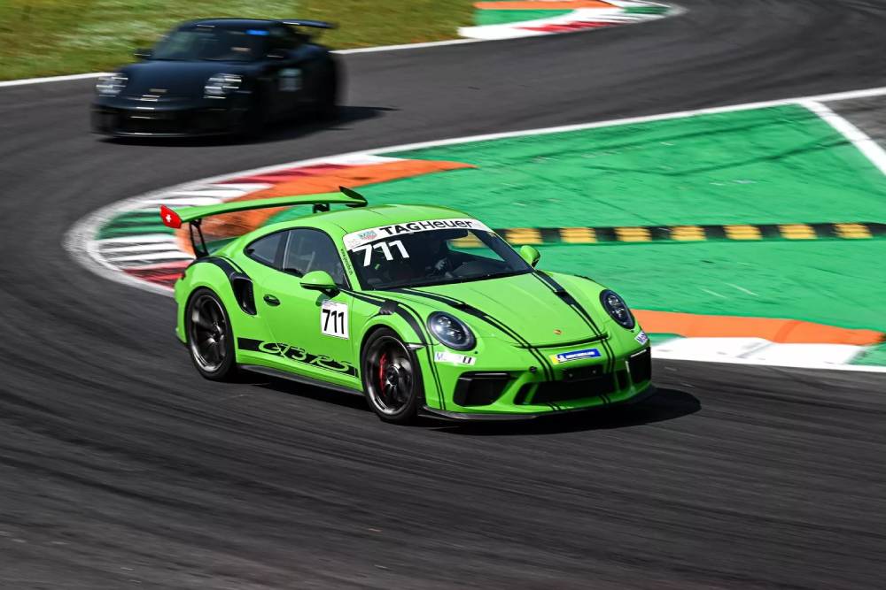 H Gallardo LP570-4 Super Trofeo πάει ακόμα ψηλότερα, με τον 5.2 V10 να παράγει 560 ίππους στις 8.000 σ.α.λ. και 540 Nm στις 6.500 σ.α.λ.. Εδώ βέβαια η ισχύς κατανέμεται σε όλους τους τροχούς, άλλο που το μεγαλύτερο βάρος οριοθετεί το 0-100 χλμ./ώρα στα 3,7 δλ. Σε τελική, όμως, η Lambo υπερβαίνει τα 325 χλμ./ώρα. Στη Μόντσα, δε, η Gallardo ξεπερνά τα 270-280 χλμ./ώρα στην ευθεία εκκίνησης-τερματισμού (λίγο χαμηλότερα η GT3 RS) και χρειάζεται να επιβραδύνει περίπου στα 50 χλμ./ώρα για το πρώτο σικέιν. Φυσικά δεν πρέπει να ξεχνάμε πως πρόκειται για μια από τις γρηγορότερες πίστες στον κόσμο, ούτε τη διαβόητη «Parabolica» που σε βγάζει στην ευθεία. Η ατρόμητη μακρυμάλλα και ασπρομάλλα δεν διστάζει στιγμή, επιτιθέμενη με θέρμη στις στροφές και τα σημεία φρεναρίσματος!