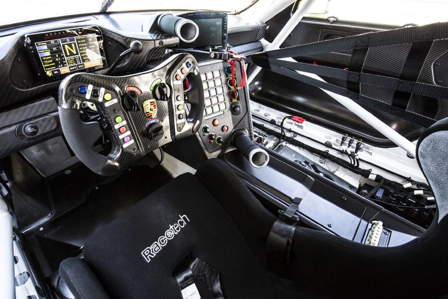 Στο «πολεμικό» εσωτερικό του όλα είναι επανασχεδιασμένα προκειμένου να καλύπτουν τις ανάγκες του πιλότου κατά τη διάρκεια ενός αγώνα. Φυσικά υπάρχει roll cage, ζώνες έξι σημείων και για πρώτη φορά σύστημα κλιματισμού το οποίο είναι συνδεδεμένο με το κάθισμα του οδηγού και το κράνος του.