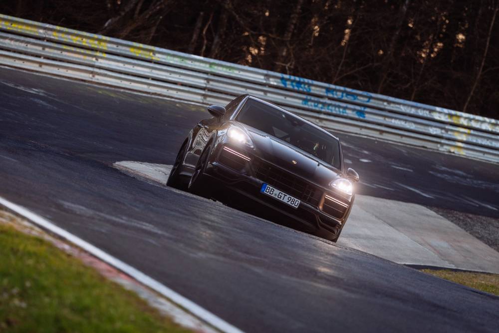 Το νέο ταχύτερο SUV όλων των εποχών στην «Πράσινη Κόλαση», είναι μια ειδική έκδοση της Cayenne Turbo Coupé. Προς το παρόν βρίσκεται ακόμα στο στάδιο της προπαραγωγής, αλλά αυτό δεν την εμπόδισε να γράψει Ιστορία στο Nordschleiffe. Το αυτοκίνητο ξεχωρίζει κυρίως πίσω, όπου διακρίνουμε τη διπλή αεροτομή και τις επίσης διπλές απολήξεις της εξάτμισης, στο κέντρο του προφυλακτήρα – όπου δεσπόζει ο διαχύτης. Τα ελαστικά Pirelli P Zero Corsa είναι ειδικά εξελιγμένα για τη συγκεκριμένη Cayenne και περιβάλλουν ζάντες 22 ιντσών, ενώ ο 4.0 V8 twinturbo διαθέτει επιπλέον 90 άλογα και 80 Nm σε σχέση με την απλή Turbo, φτάνοντας συνολικά τους 640 ίππους και τα 850 Nm.