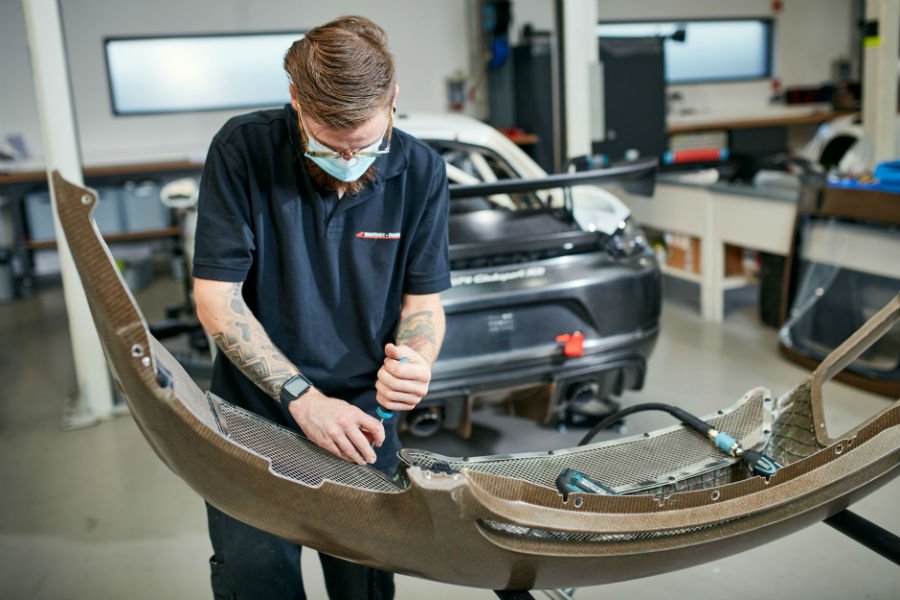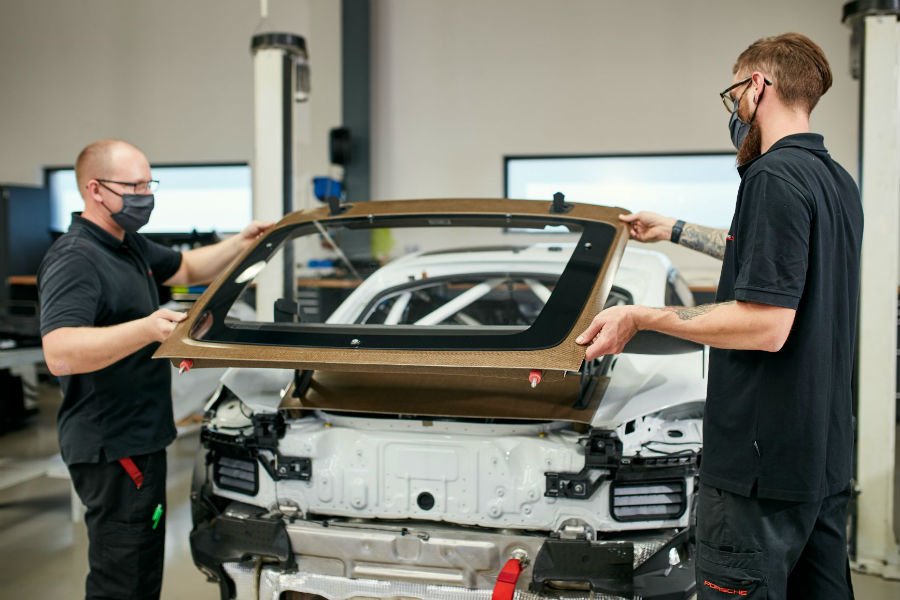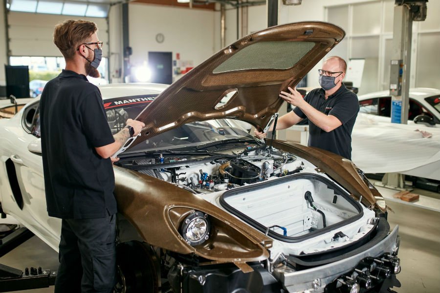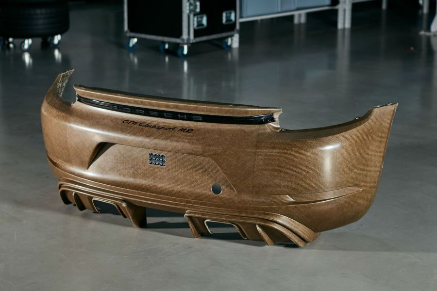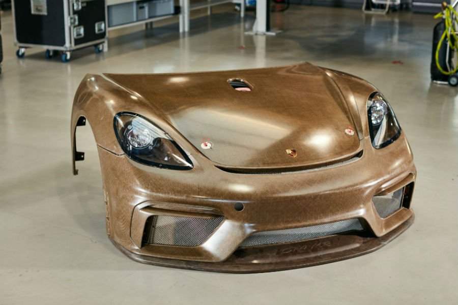 Από το 2019, η Porsche κατασκευάζει τις πόρτες και την πίσω αεροτομή της GT4 Clubsport MR από φυσικά ανακυκλώσιμα υλικά, με βάση το λιναρόσπορο! Φέτος πηγαίνει ένα βήμα παραπέρα και, για πρώτη φορά, κατασκευάζει από πολυμερές λιναριού ολόκληρο το εμπρός τμήμα (φτερά, προφυλακτήρας, splitter, καπό) και το μεγαλύτερο κομμάτι του πίσω (προφυλακτήρας, διαχύτης, κάλυμμα κινητήρα)! Το υλικό αυτό παρουσιάζει παρόμοιες ιδιότητες με τα ανθρακονήματα (απαγωγή θερμότητας, αντοχή, χαμηλό βάρος), αλλά είναι πιο οικονομικό και λιγότερο ενεργοβόρο (βλέπε εκπομπές ρύπων κατά την παραγωγική διαδικασία) στην κατασκευή του.