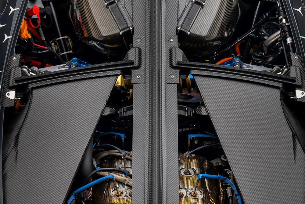 Η άκρως συναρπαστική Mercedes AMG One με το ανθρακονημάτινο αμάξωμα, έχει μήκος 4.750 χιλιοστά και το βάρος της φτάνει τα 1.695 κιλά. Το κινητήριο σύνολο αποτελείται από έναν V6 turbo 1.6 λίτρων και 4 ηλεκτροκινητήρες. Η συνδυαστική ισχύς φτάνει τους 1.063 ίππους, οι οποίοι εξασφαλίζουν επιτάχυνση στα 0-100 χλμ./ώρα σε 2,9 δλ., στα 0-200 χλμ./ώρα σε 7 δλ., στα 0-300 χλμ./ώα σε 15,6 δλ. και μέγιστη ταχύτητα 352 χλμ./ώρα. Το… κακό είναι ότι κάθε 50.000 χλμ. ο κινητήρας χρειάζεται ανακατασκευή. Βέβαια μάλλον κανείς από τους κατόχους της δεν θα φτάσει αυτό το νούμερο, αφού θα την έχουν παρκαρισμένη σε κάποιο καλά φυλαγμένο γκαράζ.