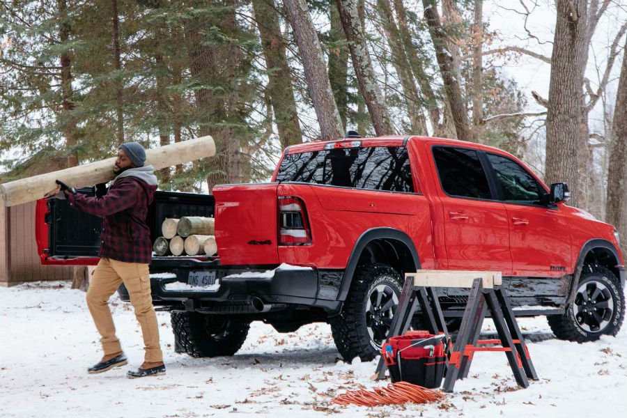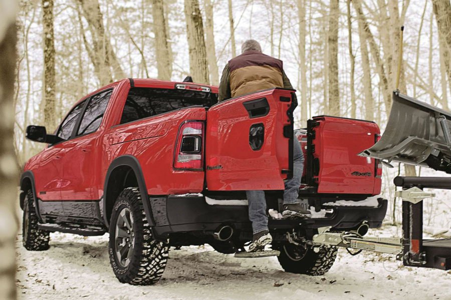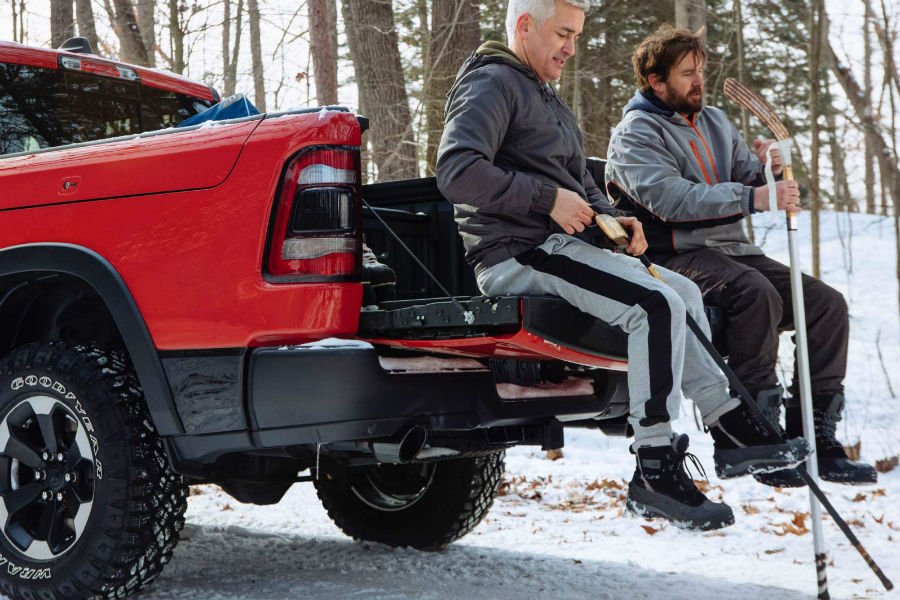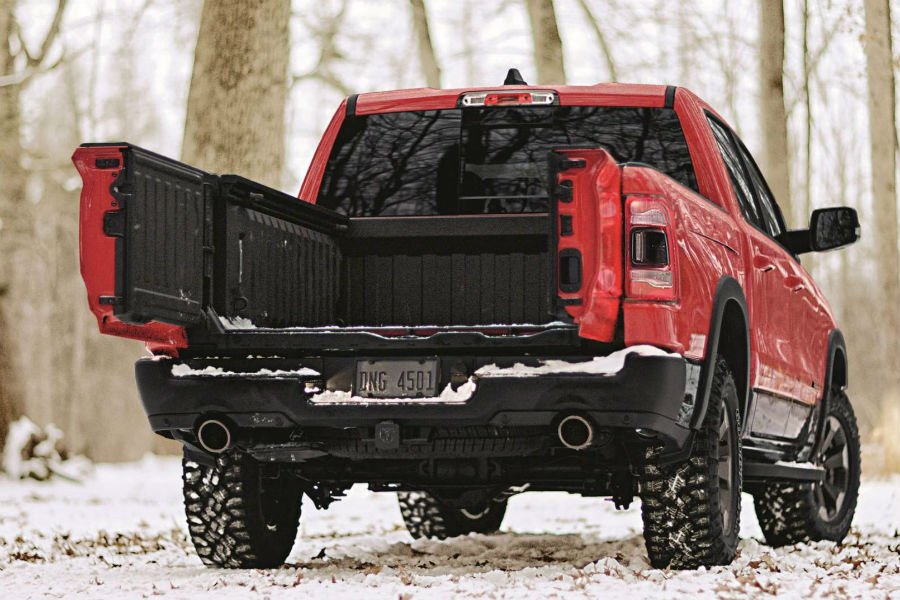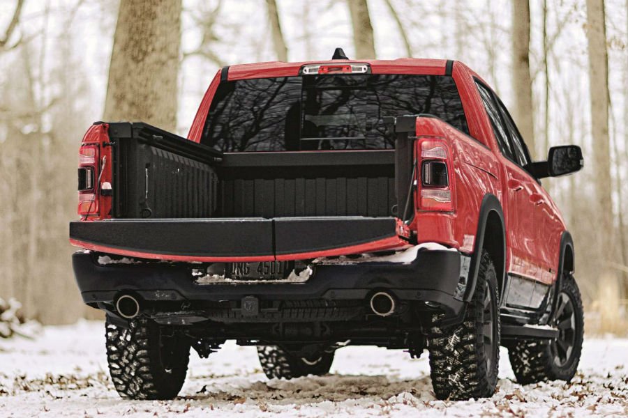 Η διαρρύθμιση αυτή επέτρεψε στους σχεδιαστές του RAM 1500 να προσθέσουν ένα πτυσσόμενο σκαλοπάτι, το οποίο διευκολύνει την επι-αποβίβαση από τον χώρο φόρτωσης. Φυσικά οι αντοχές της πόρτας παραμένουν στα γνωστά επίπεδα, καθώς οι Αμερικανοί υποστηρίζουν πως μπορεί να αντέξει μέχρι 907 κιλά βάρους, παρά το γεγονός ότι δεν αποτελεί ενιαίο κομμάτι. Εκτός αυτού του χαρακτηριστικού, η καρότσα του 1500 προσφέρει επίσης αποθηκευτικούς χώρους στα δεξιά, αλλά και στο εσωτερικό του χώρου φόρτωσης.