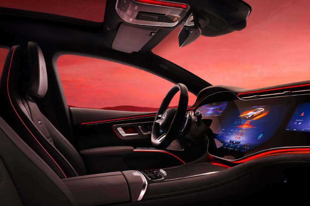 Η υπεροθόνη Hyperscreen των 56 ιντσών, οι δερμάτινες επενδύσεις Nappa, το ηχοσύστημα της Burmester και το AMG Sound Experience, που ενισχύει την ηχητική εμπειρία εντός και εκτός της EQS 53, συγκαταλέγονται στο στάνταρ εξοπλισμό. Ο οδηγός μπορεί να επιλέξει μεταξύ τριών διαφορετικών modes (Balanced, Sport και Powerful), τα οποία διαφοροποιούν τους παραγόμενους ήχους μέσα-έξω. Το Race Start επίσης διαθέτει ξεχωριστό τόνο, ενώ υπάρχει και ιδιαίτερος ήχος καλωσορίσματος.