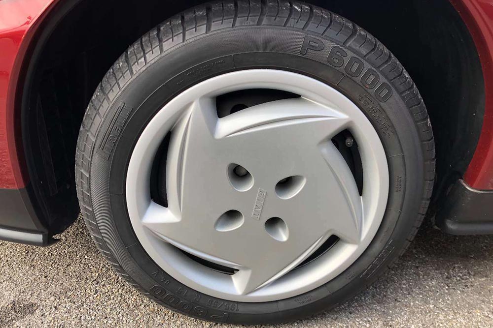 Προφανώς όλα αυτά τα χρόνια θα βρισκόταν κλεισμένο σε γκαράζ, αφού το μπορντό του χρώμα λάμπει και δεν έχει φθορές, όπως και το σπορ εσωτερικό του με τη χαρακτηριστική φάσα στο ταμπλό. Ακόμα και τα λάστιχα Pirelli P600 είναι τα εργοστασιακά (φυσικά θέλουν αντικατάσταση), όπως και τα τάσια των τροχών.