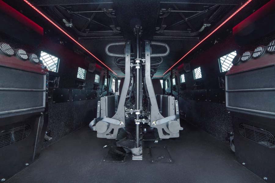 Όμως η θωράκιση, αλλά και ο εξοπλισμός στο εσωτερικό έχουν φτάσει το βάρος σχεδόν στους 14 τόνους, νούμερο που όπως αντιλαμβάνεστε απαιτεί ισχυρό μοτέρ για να κινηθεί με αξιοπρέπεια. Για το λόγο αυτό έχει προσαρτηθεί ένας 6κύλινδρος πετρελαιοκινητήρας, 335 ίππων και 1.266 Nm ροπής, ο οποίος συνεπικουρείται κι από έναν ηλεκτροκινητήρα, με την μέγιστη ταχύτητα του Superior να αγγίζει τα 130 χλμ./ώρα. Η μετάδοση της κίνησης γίνεται και στους τέσσερις τροχούς μέσω του αυτόματου κιβωτίου Alisson 3000. Μάλιστα η 4κίνηση που έχει επιλεγεί για το Superior είναι ειδικά τροποποιημένη και ενισχυμένη, όπως και η ανάρτηση, με τις γωνίες προσέγγισης και διαφυγής να αγγίζουν τις 46 και 37 μοίρες αντίστοιχα.