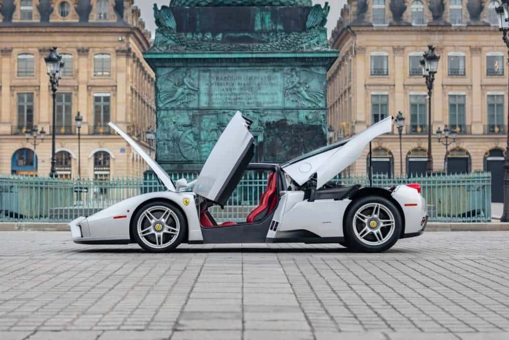Από τις 400 Ferrari Enzo που κατασκευάστηκαν – 399 για το κοινό, συν μία για τον Πάπα Ιωάννη Παύλο Β’ – η συντριπτική πλειοψηφία βάφτηκε στα παραδοσιακά χρώματα του Μαρανέλο, ήτοι κόκκινο Rosso Corsa, κίτρινο Giallo Modena και μαύρο Nero. Εξ αυτών των 400, ωστόσο, μια εκλεκτή 9άδα φόρεσε την ιδιαίτερη Argento Nürburgring 101/C απόχρωση, που καμαρώνομε στις φωτογραφίες. Κι όπως είναι αναμενόμενο για σπανιότατο δείγμα Enzo, οι τιμές στις δημοπρασίες κοντράρουν μισθούς πρωτοκλασάτων ποδοσφαιριστών παγκοσμίου επιπέδου.