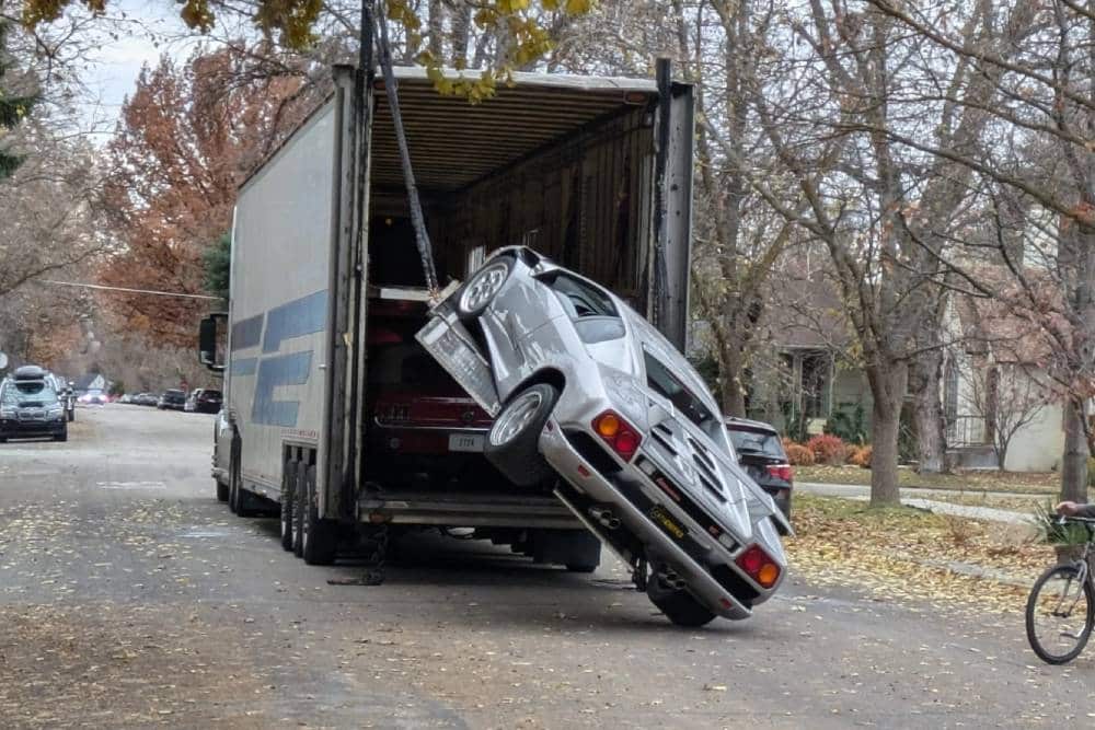 Σύμφωνα με έναν χρήστη του Instagram, το φορτηγό είχε σταματήσει για να παραλάβει μια κλασική Aston Martin. Διαδικασία που απαιτούσε πρώτα την έξοδο της Diablo από την καρότσα. Τα πάντα, ωστόσο, πήγαν στραβά, όταν η δεξιά πλευρά της ράμπας υποχώρησε από το βάρος της Lambo, σε συνδυασμό με την απώλεια του υδραυλικού υγρού. Πρόσθετες φωτογραφίες που τραβήχτηκαν αργότερα εκείνο το βράδυ δείχνουν τη Diablo να σηκώνεται προσεκτικά από έναν γερανό, σε μια προσπάθεια να αποτραπεί περαιτέρω ζημιά στο αμάξωμα ή τα μηχανικά της μέρη. Αυτόπτες μάρτυρες αναφέρουν ότι η άτυχη Diablo έμεινε σταθμευμένη στο σημείο κατά τη διάρκεια της νύχτας, υπομένοντας και καταρρακτώδη βροχή (μαζί με τη Ford Mustang που βλέπουμε στο «ισόγειο» του τρέιλερ) μέχρι να έρθει άλλο φορτηγό την επόμενη μέρα, ώστε να παραλάβει τα πανάκριβα (κοντά στις 300.000 ευρώ η αξία μόνο της Lambo) αυτοκίνητα.
