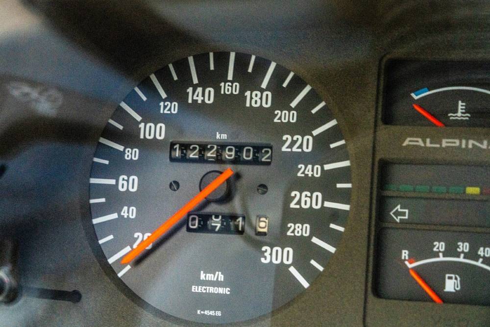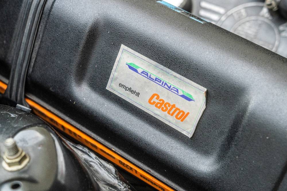 Στο εσωτερικό βρίσκουμε δερμάτινα μπάκετ της Recaro, τιμόνι και λεβιέ Alpina, ηλεκτρική ηλιοροφή και τηλέφωνο! Σε περίοπτη θέση στην κεντρική κονσόλα, κάτω από το χειρόφρενο, εντοπίζουμε την πλακέτα με τον αύξοντα αριθμό παραγωγής – εν προκειμένω, μιλάμε για τη Νο58 B7 Turbo Coupe.