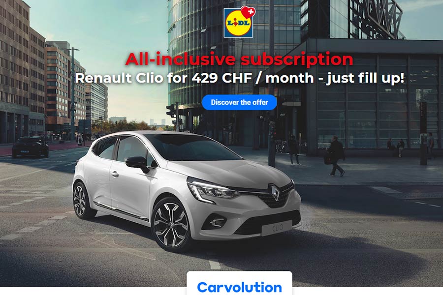 Αυτή τη φορά, η Lidl Ελβετίας σε συνεργασία με την Carvolution δίνει με leasing το Renault Clio 1.0 TCe 100 CVT στη μισή τιμή, από ότι διατίθεται στην τοπική αγορά. Οι επιλογές χρωμάτων είναι μόνο τρεις (λευκό, ασημί και γκρι) και ο εξοπλισμός διαθέτει όλα τα σύγχρονα και απαραίτητα στοιχεία ανέσεων και ασφαλείας. Το leasing περιλαμβάνει ασφάλιση, service, αλλαγή ελαστικών και εκπτωτική κάρτα καυσίμων.
