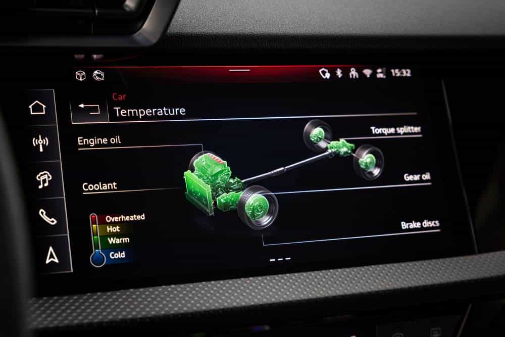 Από την εισαγωγή του torque splitter το 2021, το RS 3 έφτασε σε άλλα επίπεδα δυναμικής. Η πλήρως μεταβλητή κατανομή ροπής στον πίσω άξονα επιτρέπει όχι μόνο αυξημένη ευελιξία αλλά και μεγαλύτερη σταθερότητα – ένα πλεονέκτημα στην καθημερινή οδήγηση καθώς και στην πίστα αγώνων. Με την αναβάθμιση στα τέλη του 2024, το mega hatch (και sedan) από το Ίνγκολσταντ αποδίδει ακόμα καλύτερα στις στροφές. Ένας βελτιωμένος αλγόριθμος διασφαλίζει πιο ακριβή αλληλοεπικάλυψη των συστημάτων, καταπολεμώντας την υποστροφή ακριβώς στην αρχή της στροφής και με τη βοήθεια του brake vectoring – τη χρήση των φρένων στους εσωτερικούς τροχούς, δηλαδή, με την ταυτόχρονη μεταφορά περισσότερης ροπής στους εξωτερικούς από το torgue splitter.