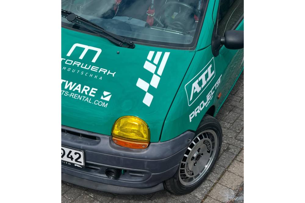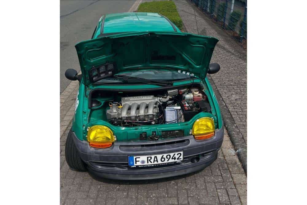 Αυτό ακριβώς θέλει να κάνει η γερμανική ομάδα Rauh Racing, των αδελφών Filip και Felix Rauh. Οι δυο τους ήθελαν να συμμετάσχουν με κάτι διαφορετικό στις 24 Ώρες του Nurburgring, ένα καθαρόαιμο αγωνιστικό, αλλά παράλληλα και φθηνό. Ο Filip πήρε την ιδέα για το Twingo τυχαία, από ένα ποστ 15ετίας σε φόρουμ όπου κάποιος ανέφερε ότι είχε βάλει τον κινητήρα του Clio Sport 172, στο μηχανοστάσιο του μικρού Renault. Ως ιδέα, δεν είναι τόσο παράλογη. Το Twingo MK1 ζυγίζει μάξιμουμ 850 κιλά, πριν αρχίσουν να φεύγουν καθίσματα, επενδύσεις, ηχομόνωση, air condiiton κι όλα τα περιττά σε ένα αγωνιστικό. Οπότε χοντρικά, μιλάμε για κάτω από 800 κιλά σε συνδυασμό μίνιμουμ με 172 άλογα, που παράγει εργοστασιακά ο 2.0λιτρος ατμοσφαιρικό του Clio Sport 172. Άρα, «στο νερό» 4,65 κιλά ανά ίππο.