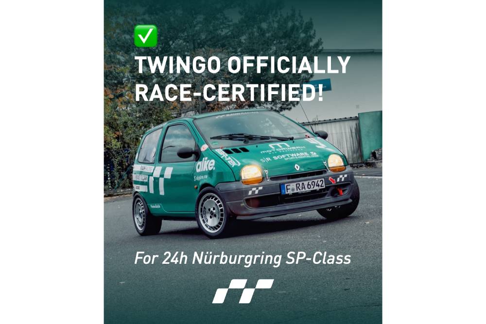 O κινητήρας έχει ήδη πάρει θέση κάτω από το καπό του Twingo, ενώ έχει κάνει και τις πρώτες του γύρες στην πίστα. Το μεταλλαγμένο Γαλλάκι πήρε πρόσφατα πιστοποίηση για συμμετοχή στην κατηγορία SP3, εν όψει των 24 Ωρών του Nurburgring το 2026, τον επόμενο Μάιο.