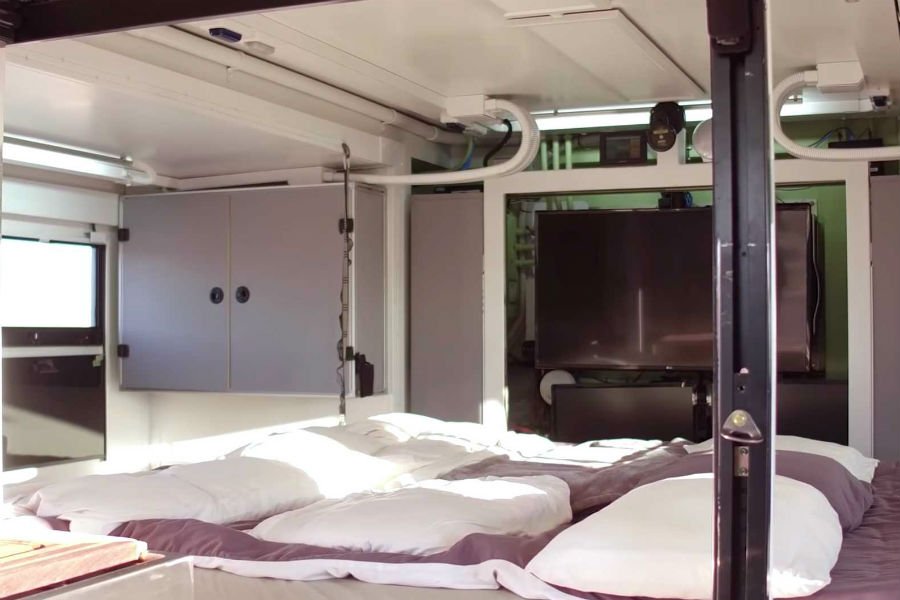 Η μέγιστη ταχύτητα φτάνει τα 94 χλμ./ώρα και η αυτονομία του 212 λίτρων ρεζερβουάρ μπορεί να φτάσει μέχρι τα 483 χιλιόμετρα. Οι ανέσεις που προσφέρει το μεταποιημένο όχημα θα ζήλευαν πολλά κανονικά σπίτια, με king size κρεβάτι, πλήρως λειτουργική κεραμική κουζίνα, κλιματισμό, τραπεζαρία, ακόμα και φωτοβολταϊκά! Μάλιστα ο χώρος φιλοξενείας είναι πτυσσόμενος, αυξάνοντας κατά βούληση την ευρυχωρία.