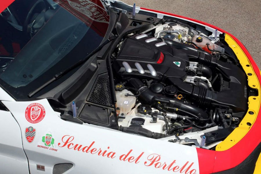 Πίσω στο σήμερα και την Giulia, η οποία είναι απαλλαγμένη από κάθε τι πολιτικό και στοιχείο άνεσης, έχοντας πλέον roll cage και ένα αγωνιστικό μπάκετ στο εσωτερικό. Το βάρος έχει μειωθεί κατά 200 κιλά, φτάνοντας συνολικά τα 1.400. Πολλά πάνελ του αμαξώματος, όπως πόρτες και καπό, είναι από ανθρακονήματα, ενώ το ίδιο υλικό συνθέτει την εντυπωσιακή και ρυθμιζόμενη αεροτομή, που είναι και η ειδοποιός διαφορά σε σχέση με την έκδοση παραγωγής – μαζί με τα χρώματα της Scuderia del Portello.