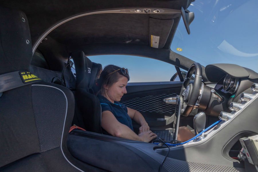 Τα καθήκοντα της Lemke πολλά. Πρέπει να αξιολογεί την συμπεριφορά του αυτοκινήτου στις ακραίες αυτές συνθήκες, να αναλύει τα δεδομένα, να προσαρμόζει τις παραμέτρους αναλόγως των αποτελεσμάτων και το κυριότερο: να οδηγεί. Για την ακρίβεια, οι δοκιμές αντοχής και αξιοπιστίας του τετρατούρμπινου 8λιτρου W16 περιλαμβάνουν οδήγηση στα 250 χλμ./ώρα για ώρες, προκειμένου να αξιολογηθεί η ευπάθεια ή μη στα θερμικά φορτία, ενώ δεν λείπουν και βόλτες διαρκείας (όχι τόσο μεγάλης, πάντως) κοντά στην τελική – ή όσο επιτρέπει το οδόστρωμα και οι τοπικές αρχές. Δεδομένου ότι η βελόνα του κοντέρ σταματά στα 380 χλμ./ώρα (είπαμε, η Divo δίνει έμφαση στην κάθετη δύναμη και την ταχύτητα στις στροφές), μπορούμε με ασφάλεια να υποθέσουμε πως η Γερμανίδα μηχανικός κινείται αρκετά συχνά στην περιοχή των 300 χλμ./ώρα.