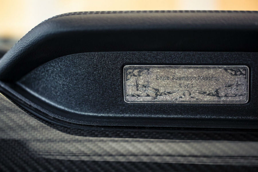 Η Eagle Squadron Mustang GT, όπως ονομάζεται το μοναδικό μοντέλο, ακολουθεί τις χρωματικές επιταγές των αεροσκαφών που αποτέλεσαν τον «εφιάλτη» της Luftwaffe, καταρρίπτοντας σωρηδόν τα Messerschmitt της γερμανικής πολεμικής αεροπορίας, πάνω από την Μεγάλη Βρετανία. Η μία φωτογραφία που διέθεσαν οι Αμερικανοί μας δείχνει την πανοραμική άποψη της Mustang, στην οποία δεσπόζει το σύμβολο των Η.Π.Α. (ο βασιλικός αετός, δηλαδή) αλλά και ο χαρακτηριστικός στόχος-σήμα κατατεθέν των P-51 της RAF.