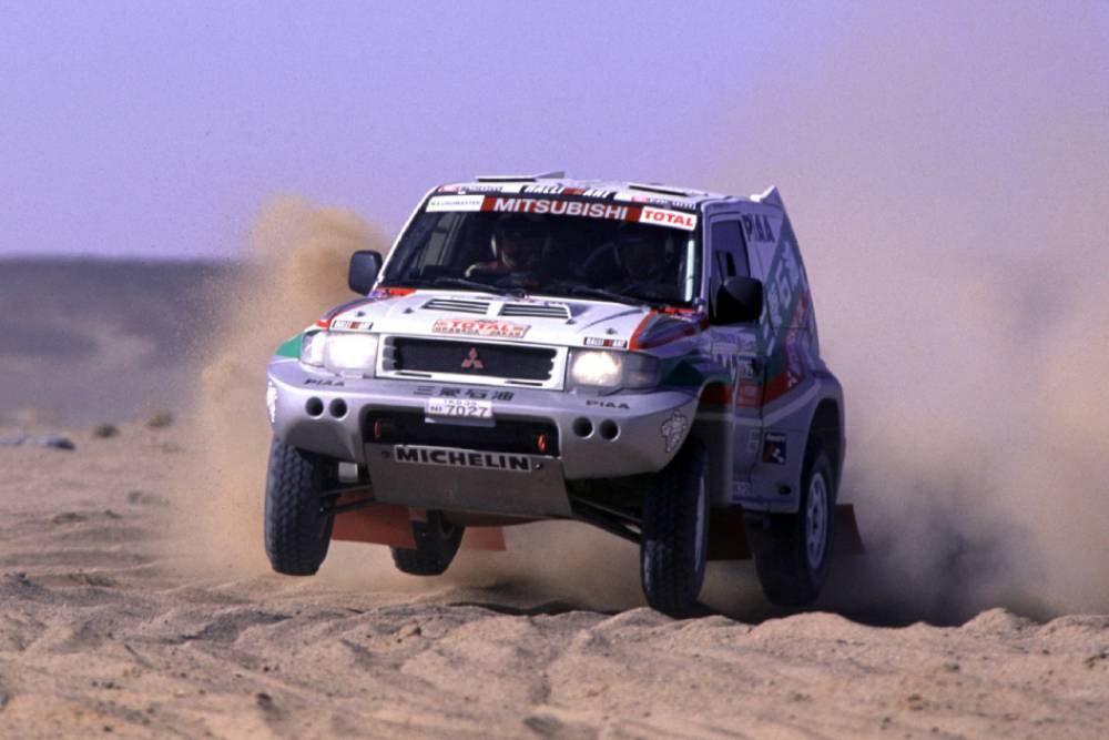 Το off roader των «Τριών Διαμαντιών» φόρεσε το τιμημένο λογότυπο, στα πλαίσια της homologation για την κυριαρχική του συμμετοχή στο Ντακάρ. Το Pajero Evo κατέκτησε 7 σερί νίκες, από το 2001 έως το 2007, και μέχρι σήμερα είναι το πιο επιτυχημένο αυτοκίνητο στο φημισμένο αγώνα!